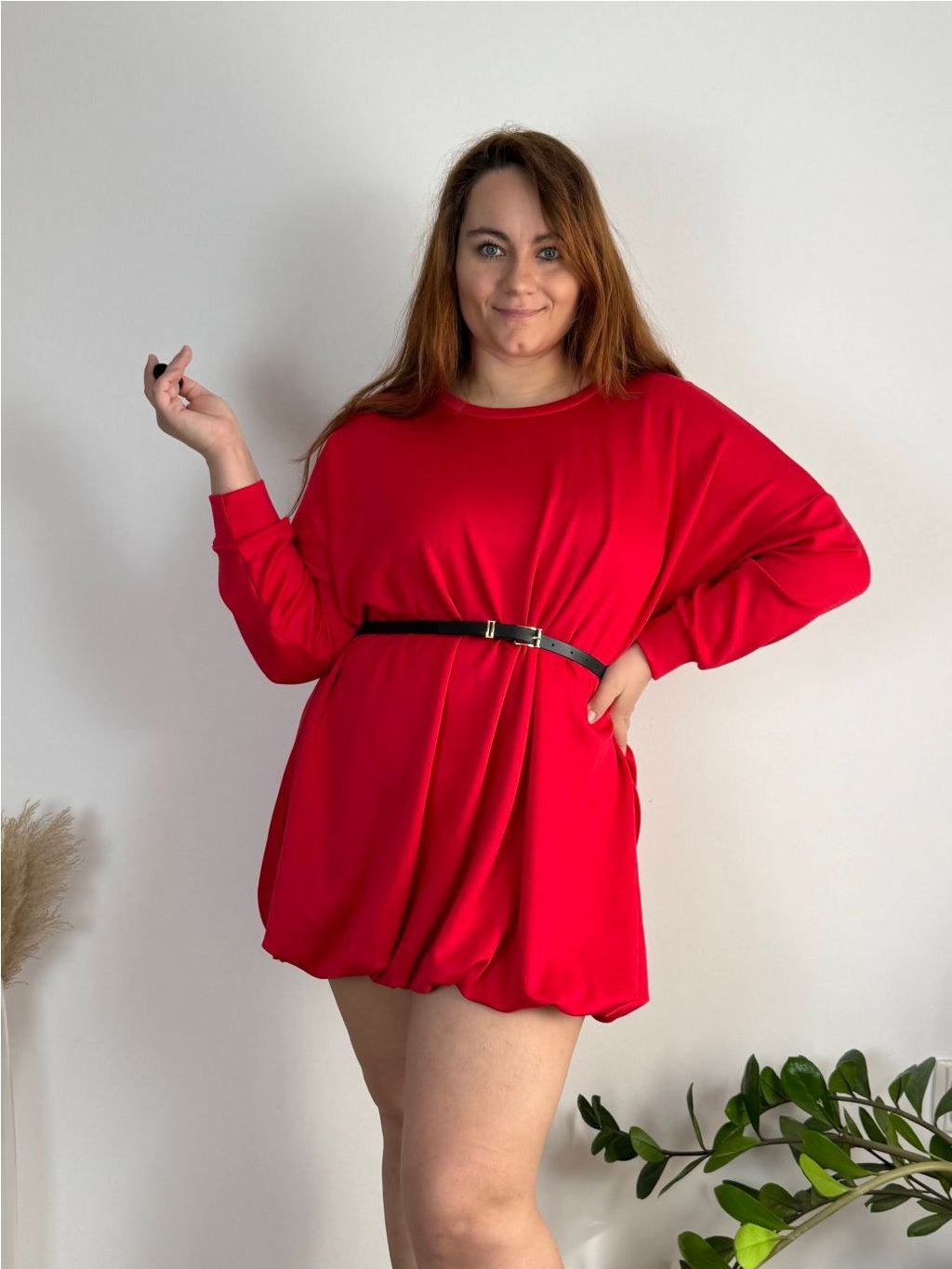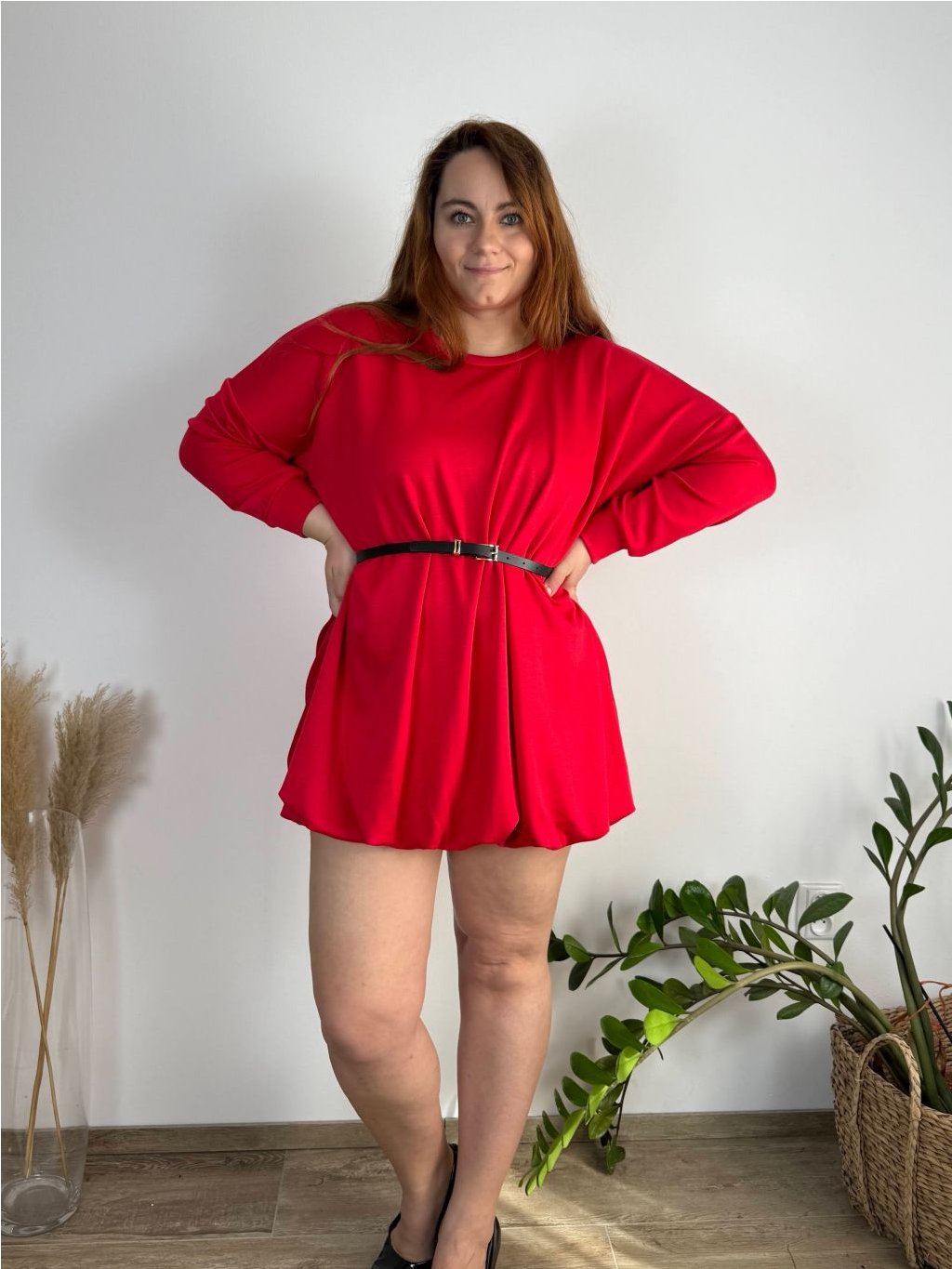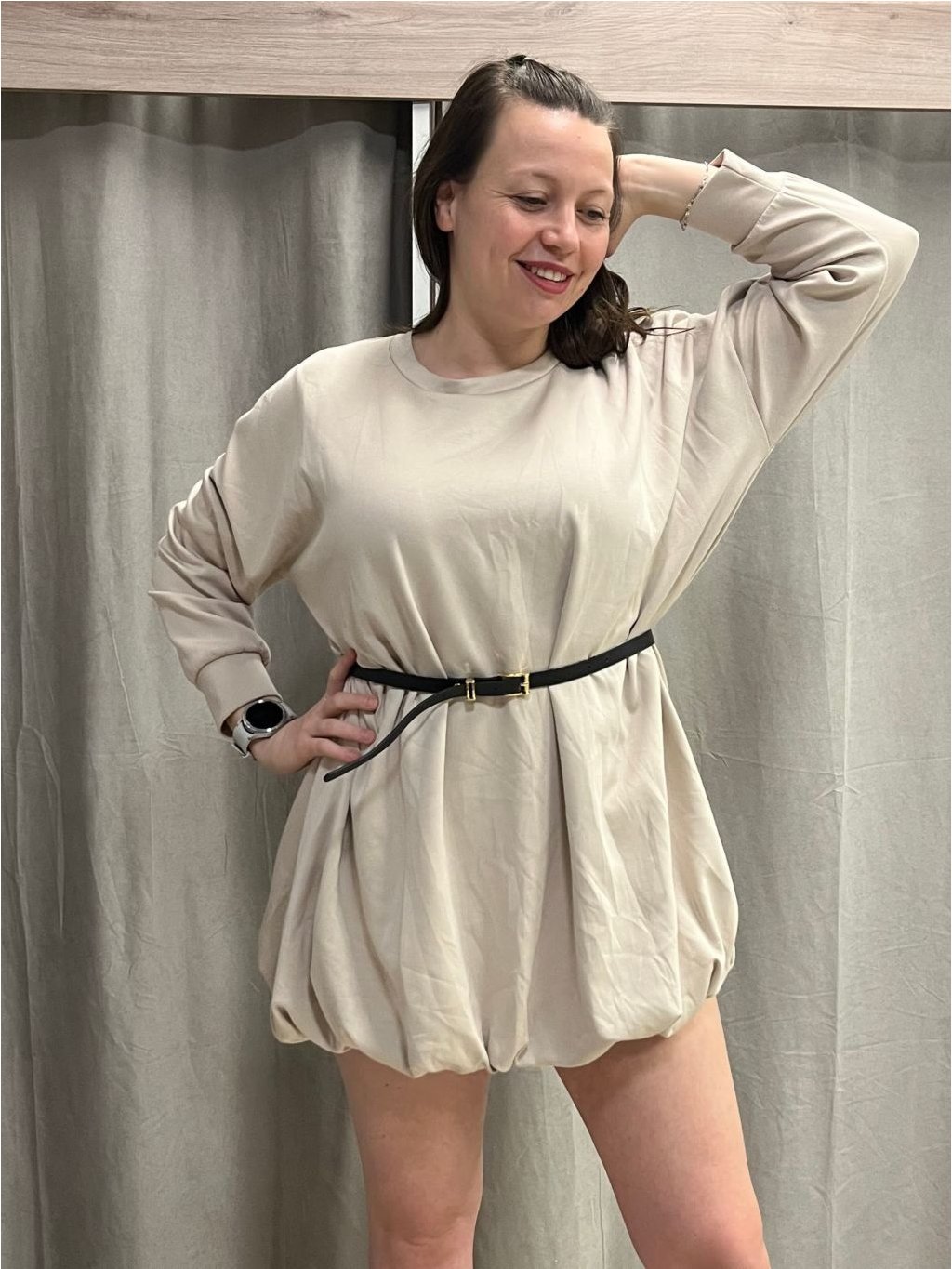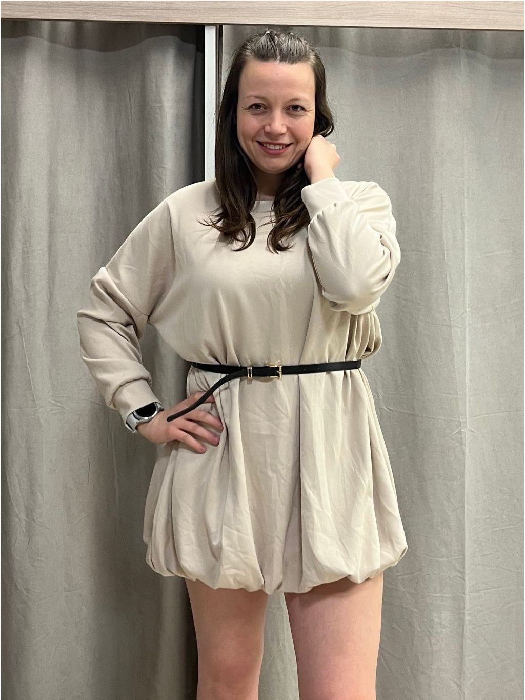Rozměry: přes prsa: 150 cm, volné rukávy, boky: 144 cm, délka: 82 cm