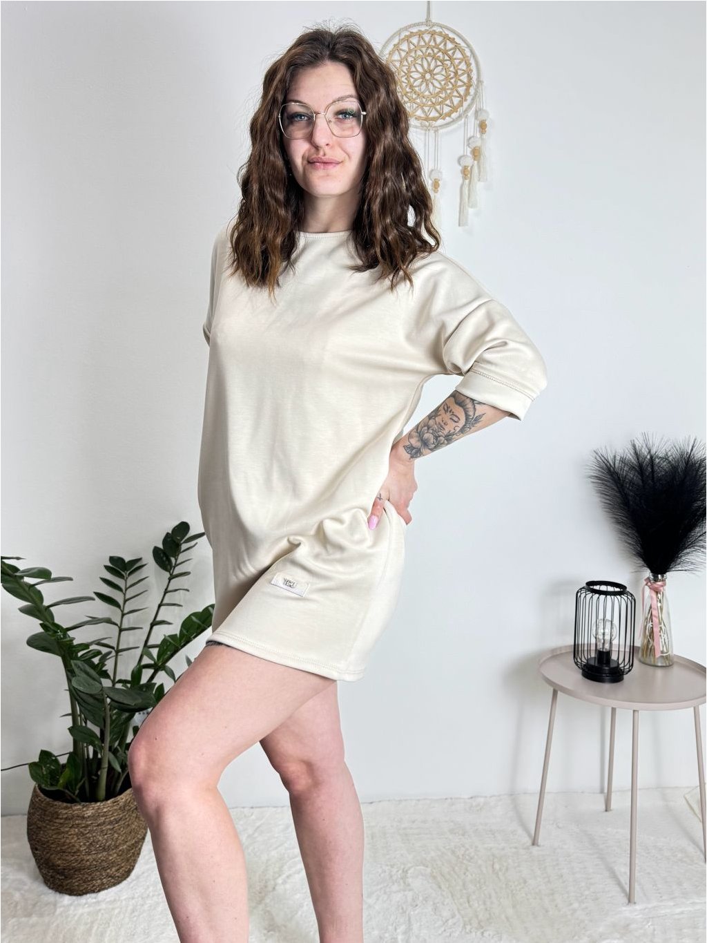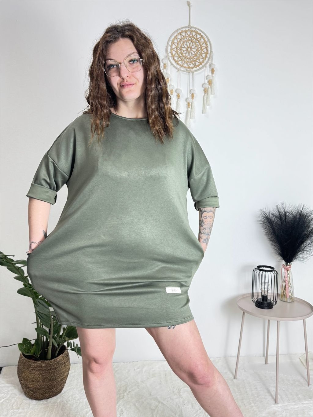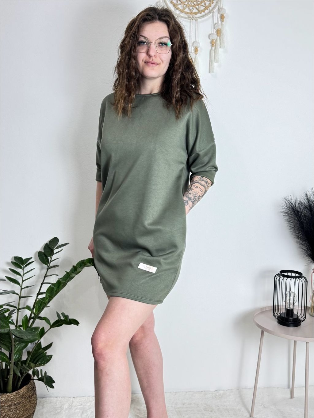 Šaty krátké oversize 3/4 dlouhý rukáv dámské (M/L/XL ONE SIZE) ITALSKÁ MÓDA IMD25009/DUR