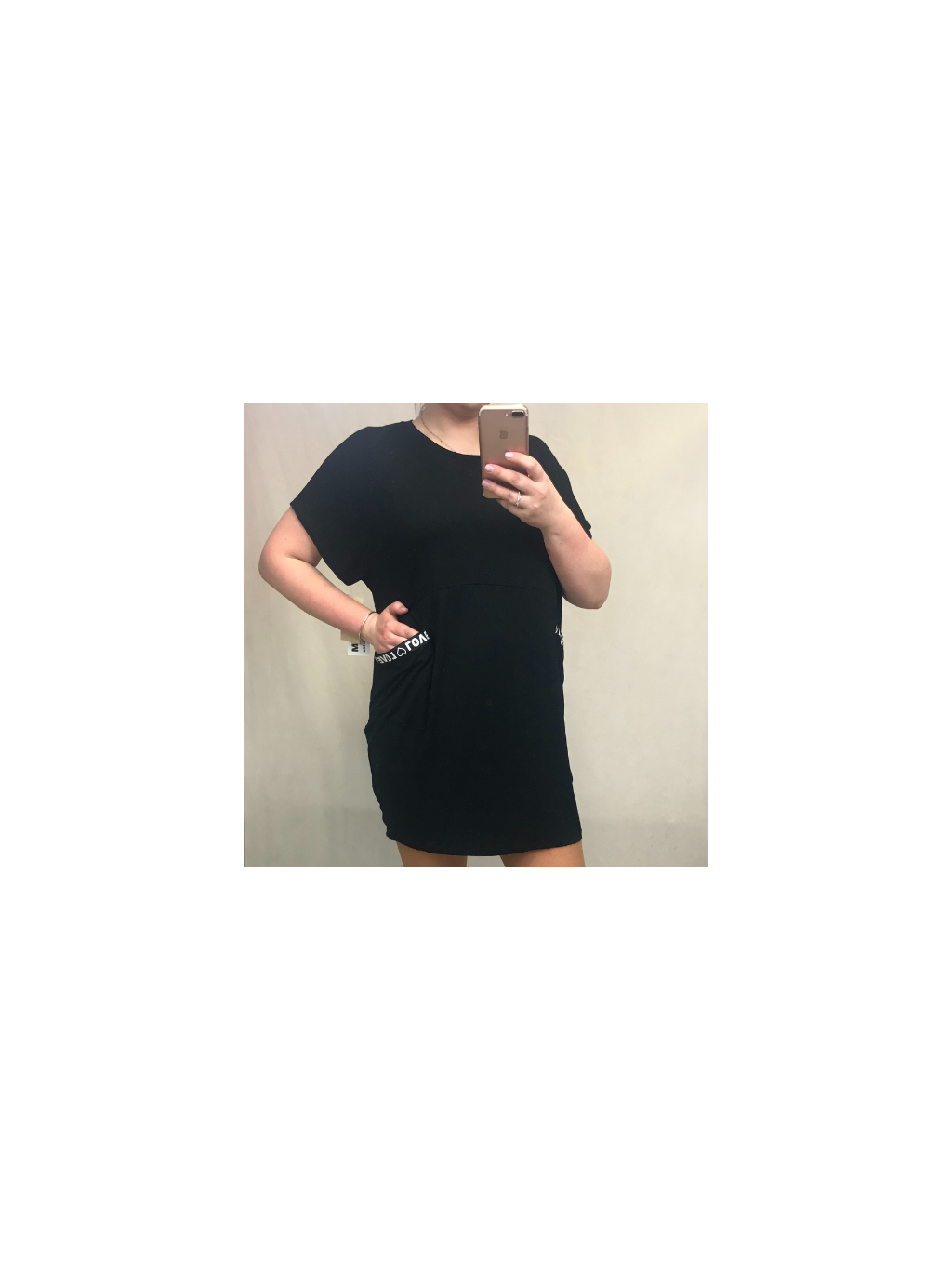 Šaty krátký rukáv dámské nadrozměrné (3XL/4XL ONE SIZE) ITALSKÁ MÓDA IM4210269/DR černá