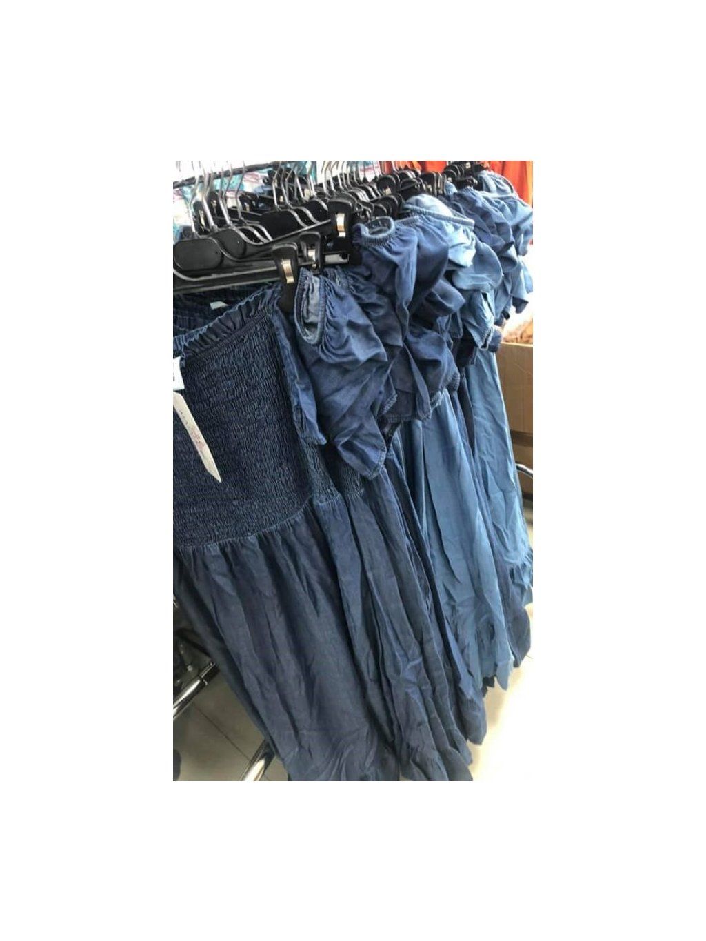 Šaty letní carmen krátký rukáv riflové dámské (S/M ONE SIZE) ITALSKÁ MÓDA IMM21014/DR
