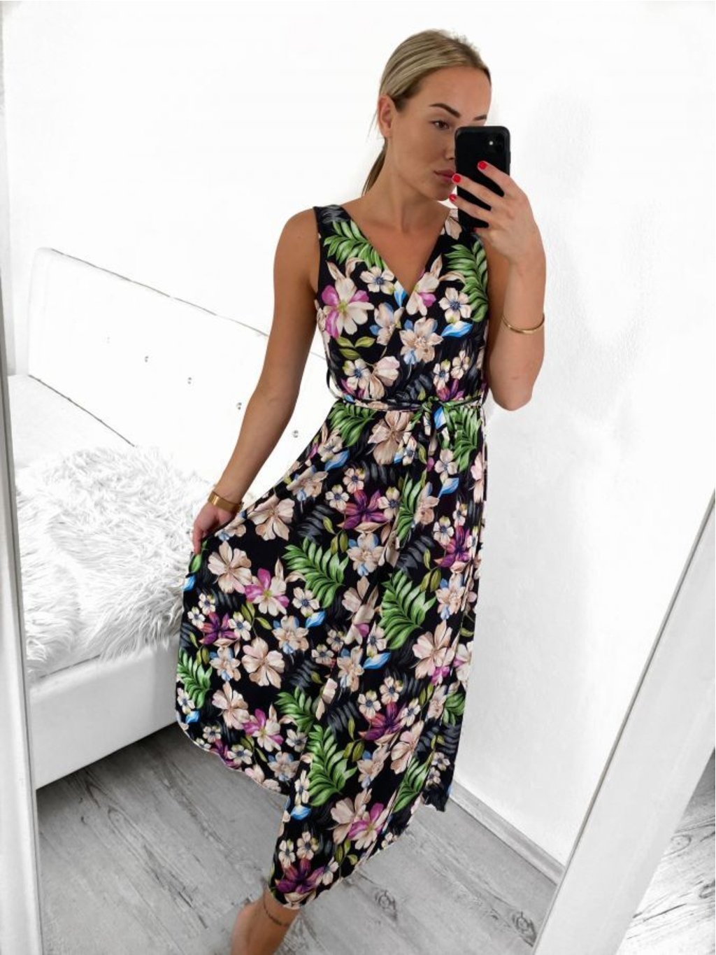 Dlouhé letní icecool šaty na široká ramínka a v pase na zavazování. Icecool je chladivý materiál, velmi příjemný na dotek, ideální do letních teplých dnů.