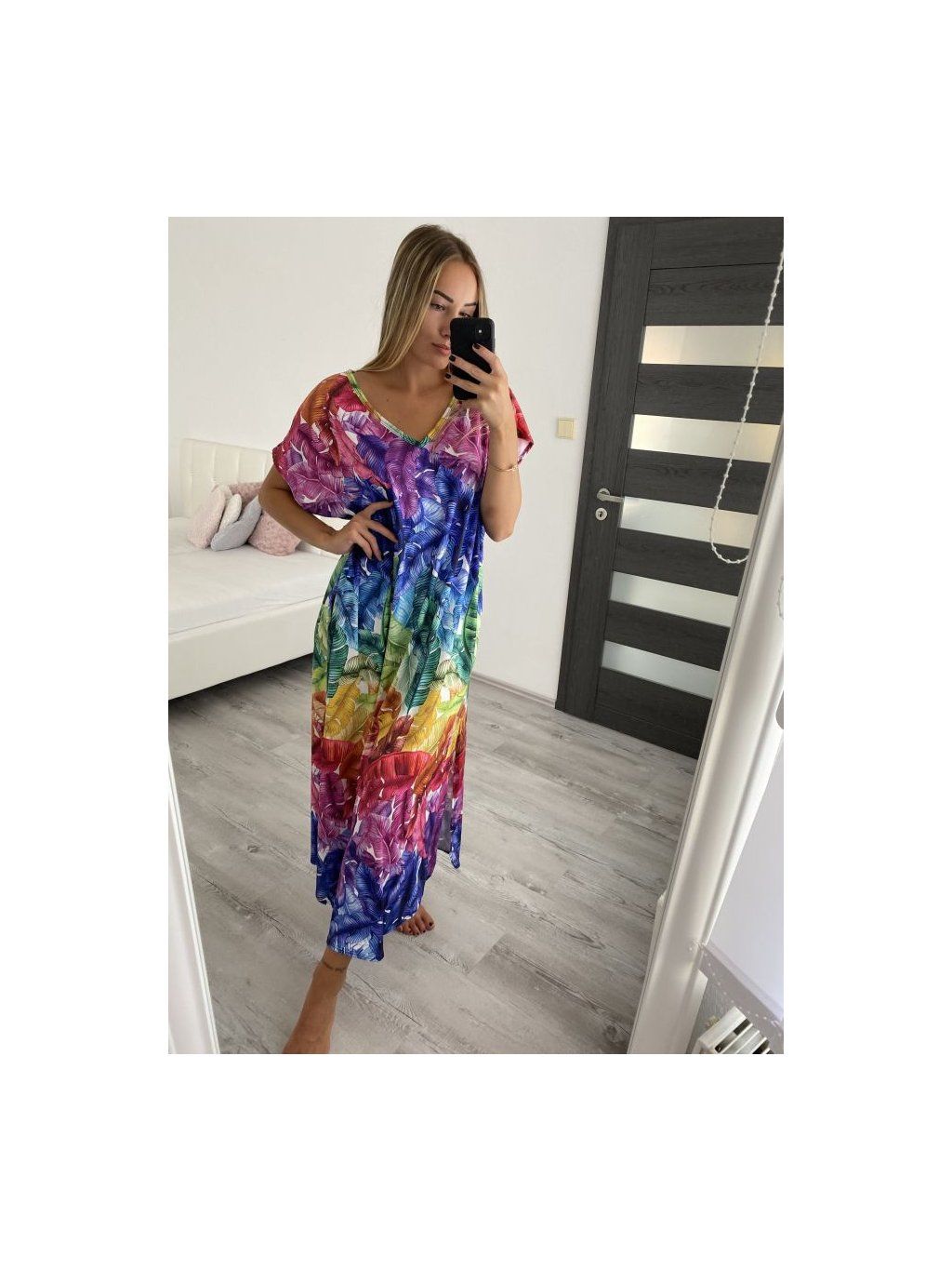 Šaty letní dlouhé volnočasové krátký rukáv dámské nadrozměr (L/XL/2XL/3XL/4XL ONE SIZE) ITALSKÁ MÓDA IM422385