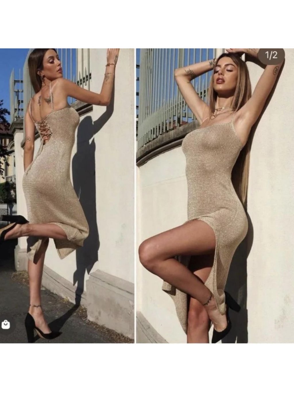 Šaty midi letní pletené na ramínka dámské (S/M ONE SIZE) ITALSKá MóDA IMM23LS1276/DU