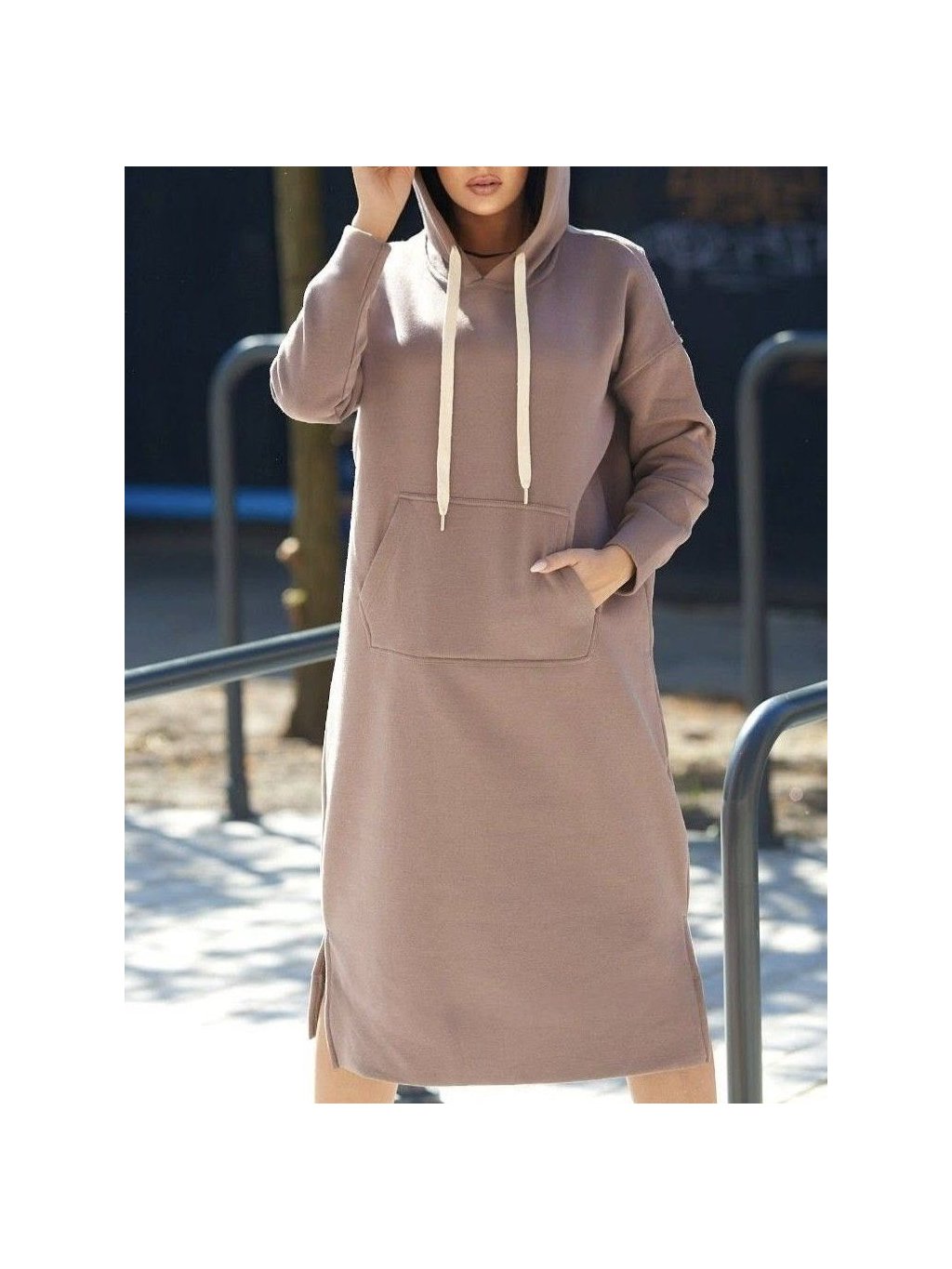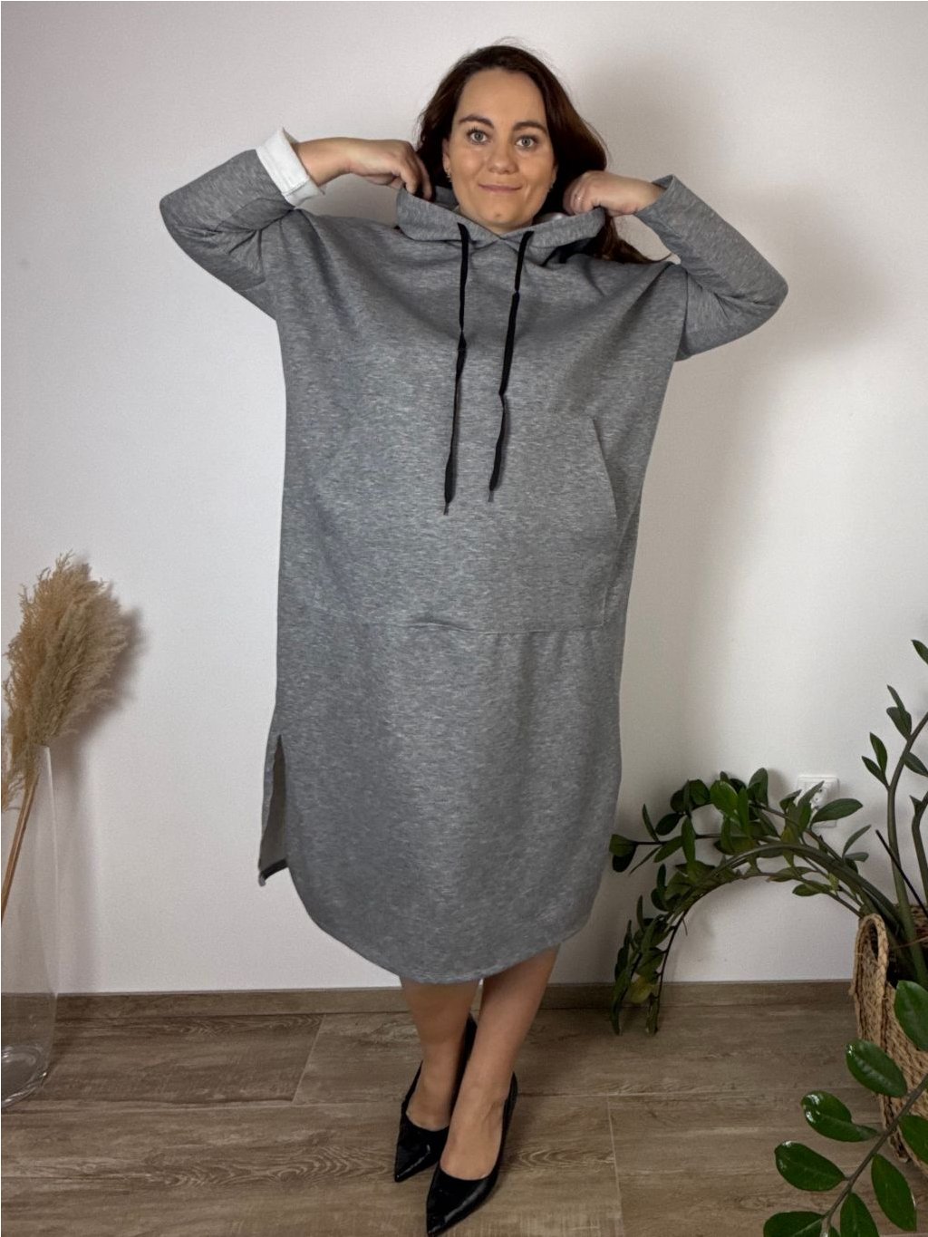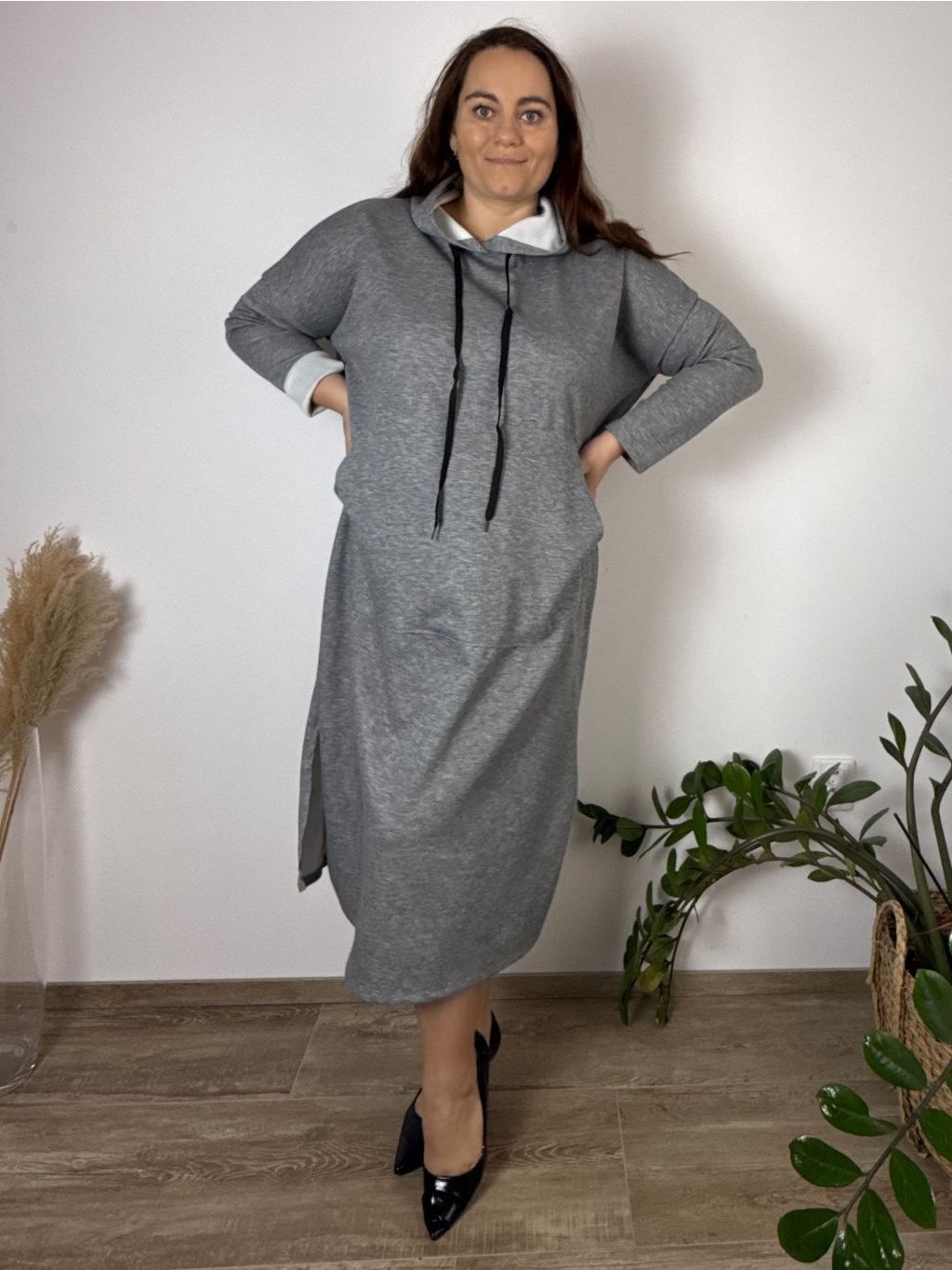 Šaty mikinové s kapucí a kapsami dlouhý rukáv dámské nadrozměr KARLA (54/56/58 ONE SIZE) ITALSKÁ MÓDA IMD25159