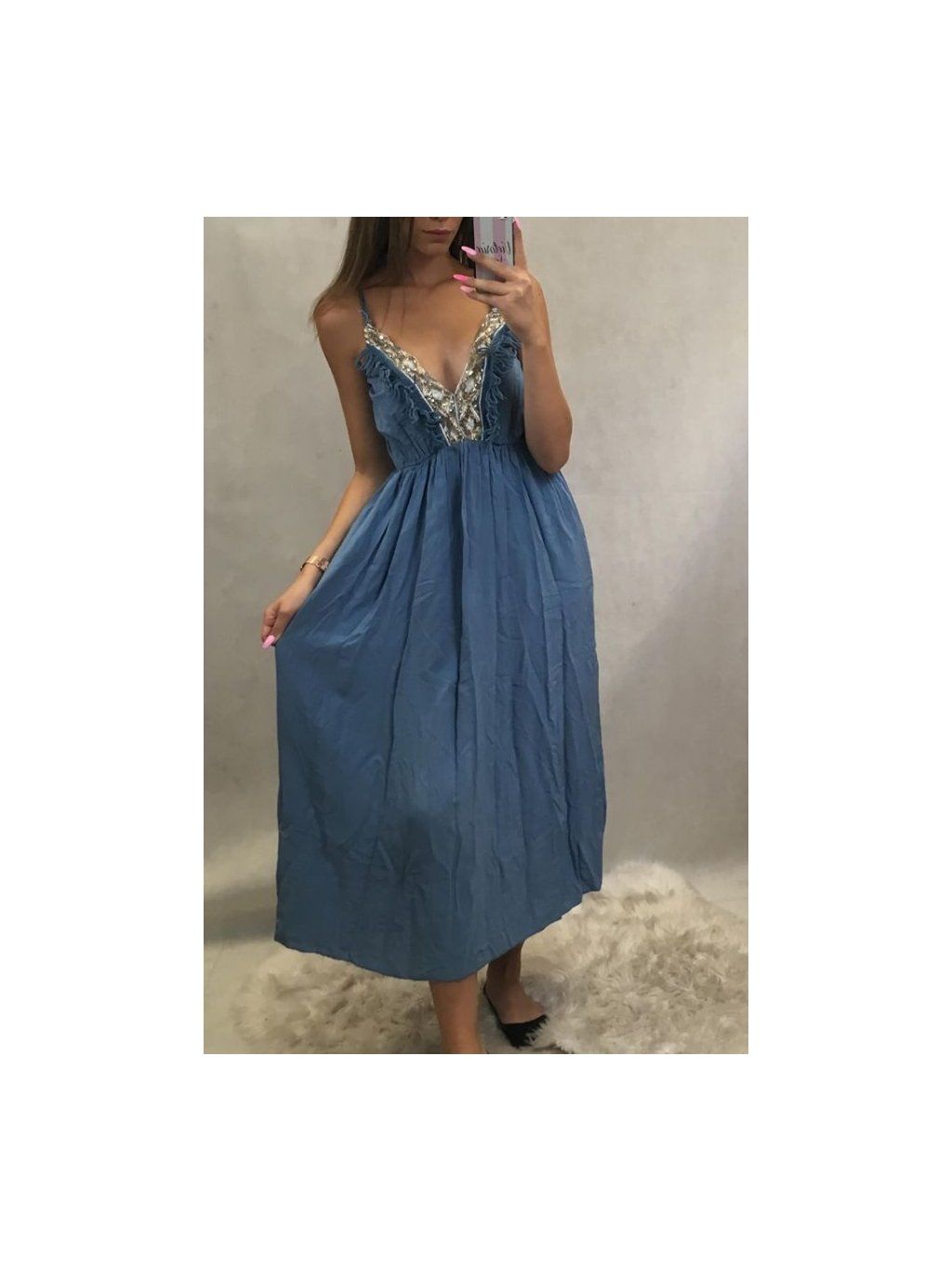 Šaty na ramínka letní dlouhé dámské (uni s/m) ITALSKÁ MÓDA IM919286IMT/DR modrá