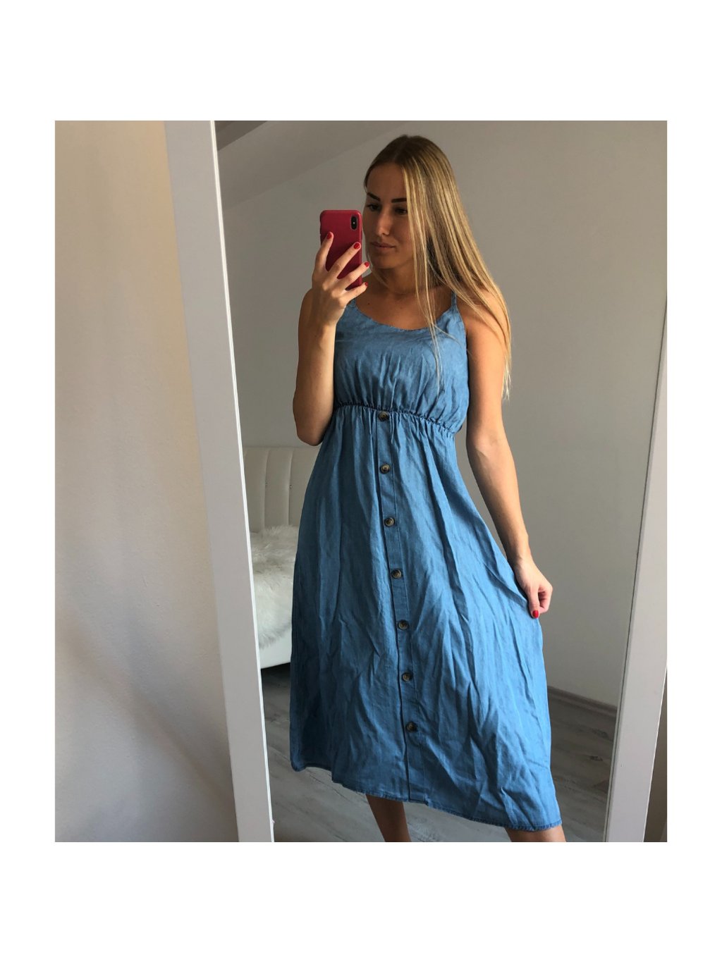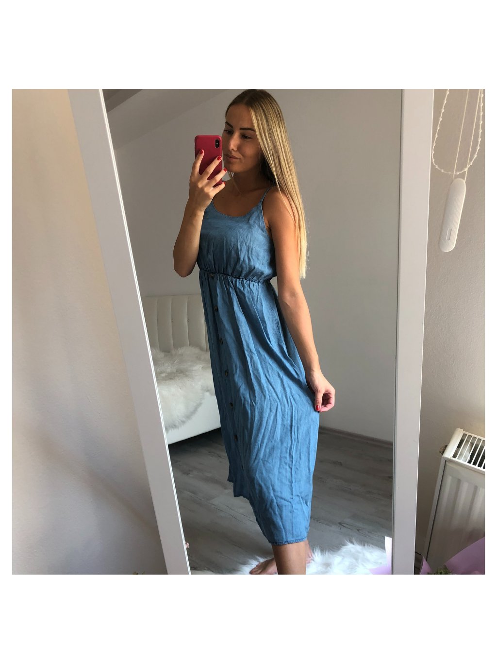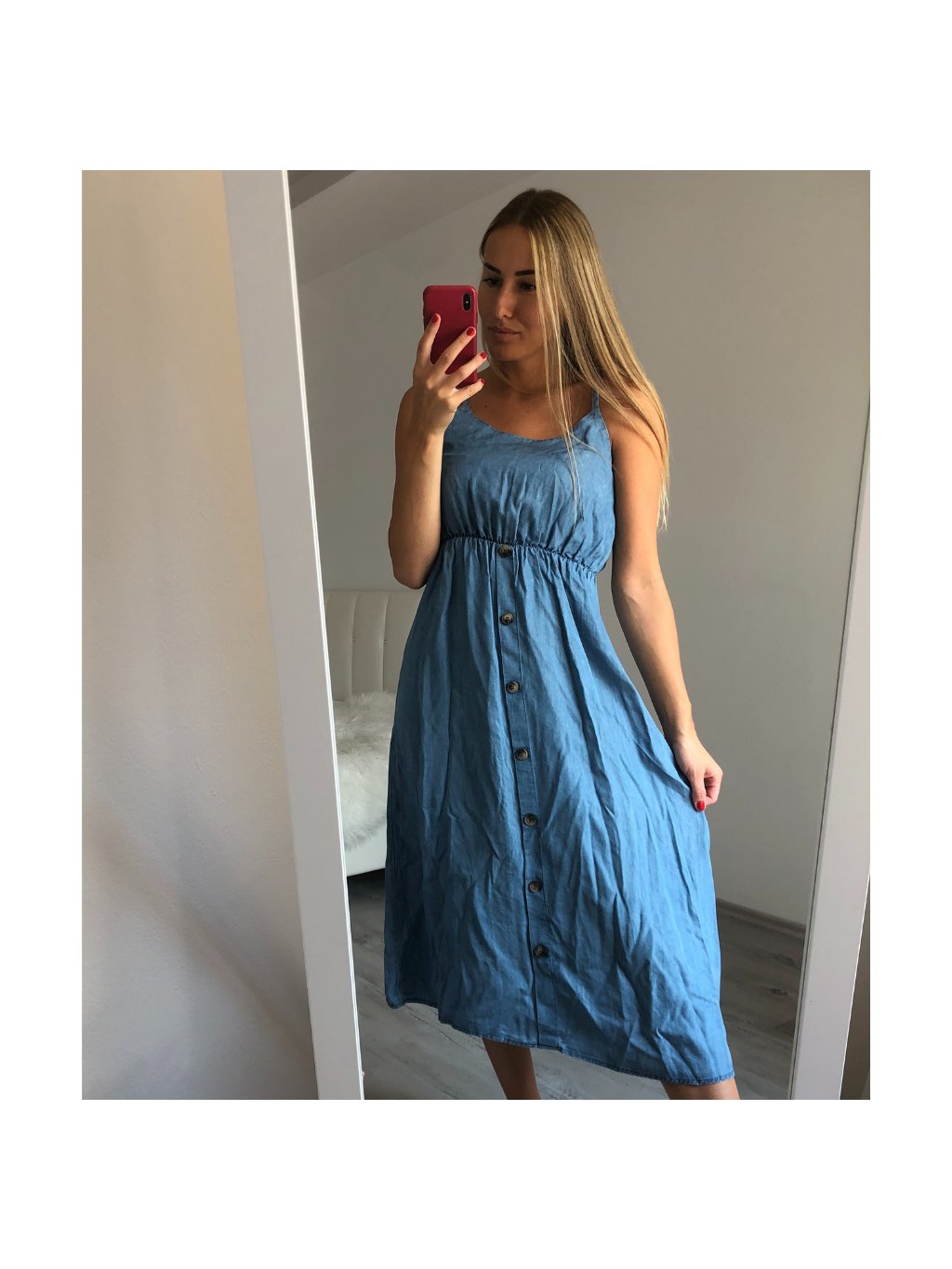 Šaty na ramínka riflové dlouhé letní dámské (S/M ONE SIZE) ITALSKÁ MÓDA IM721175/DR