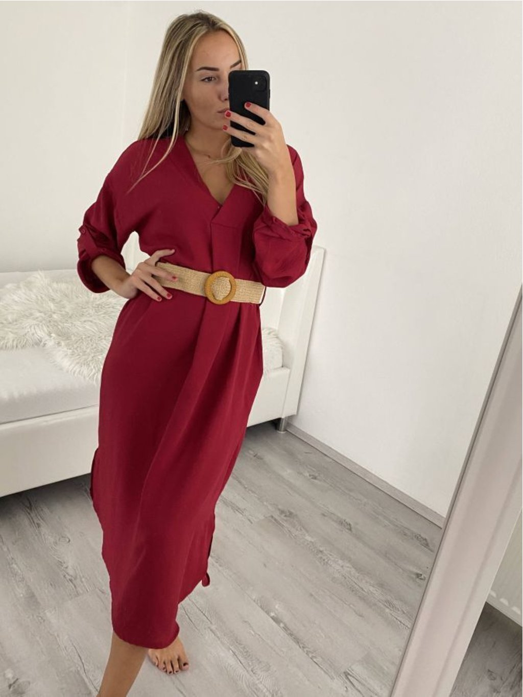 Šaty s páskem 3/4 rukáv dámské (M/L/XL ONE SIZE) ITALSKá MóDA IM422BELT/DR