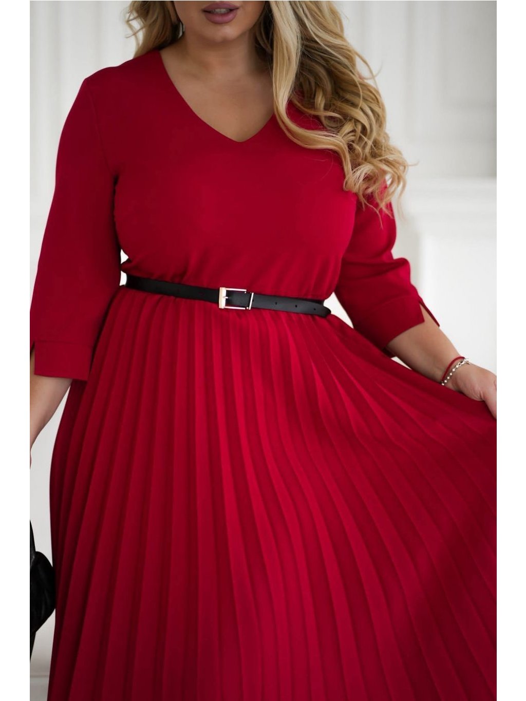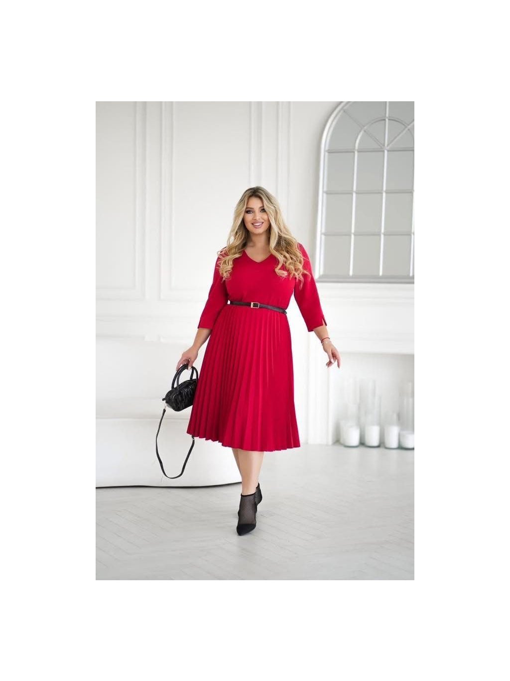 Šaty s páskem elegantní 3/4 rukáv dámské nadrozměr (38-48) POLSKÁ MÓDA PMLLD255078-1/DUR