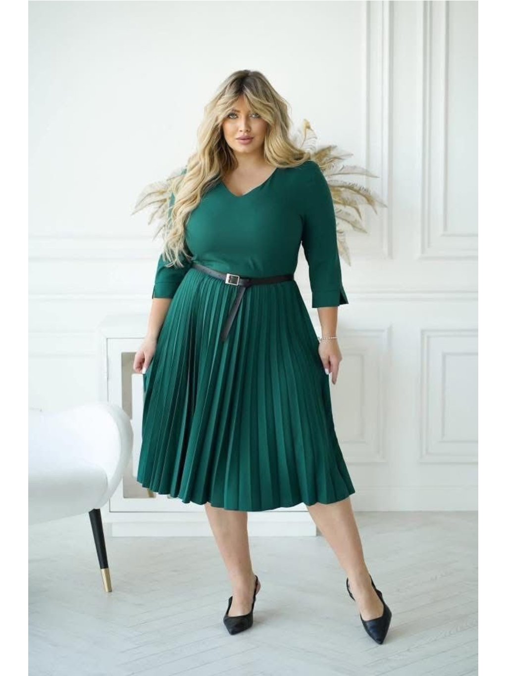 Šaty s páskem elegantní 3/4 rukáv dámské nadrozměr (38-48) POLSKÁ MÓDA PMLLD255078/DUR