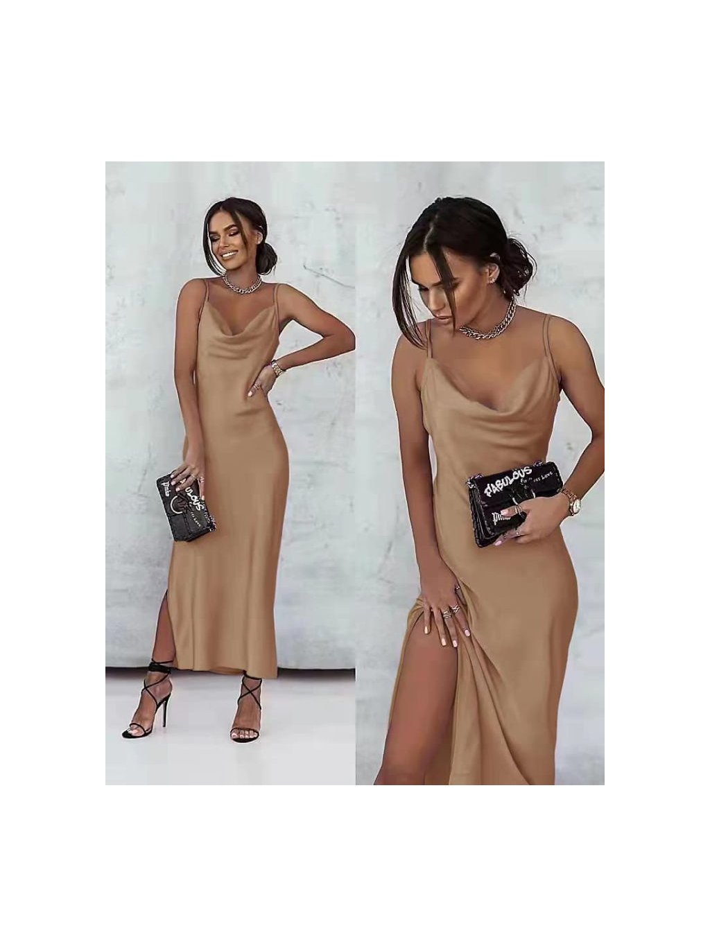 Šaty saténové na ramínka dlouhé dámské (S/M ONE SIZE) ITALSKÁ MÓDA IMD22247