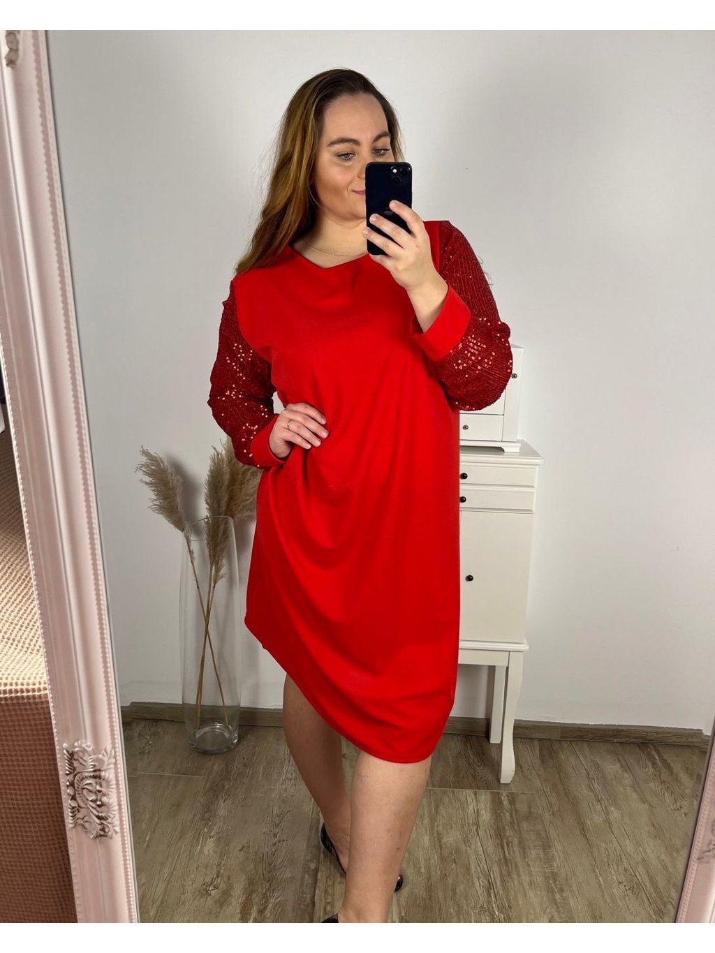 Šaty společenské flitrové dlouhý rukáv dámské nadrozměr (3XL/4XL/5XL ONE SIZE) ITALSKÁ MÓDA IMWT234281/DU