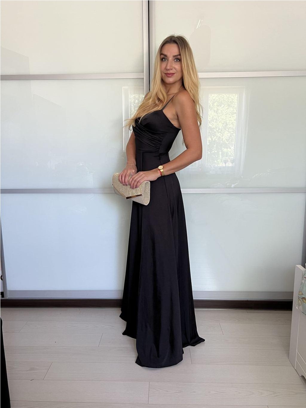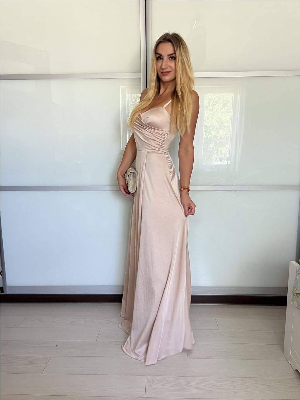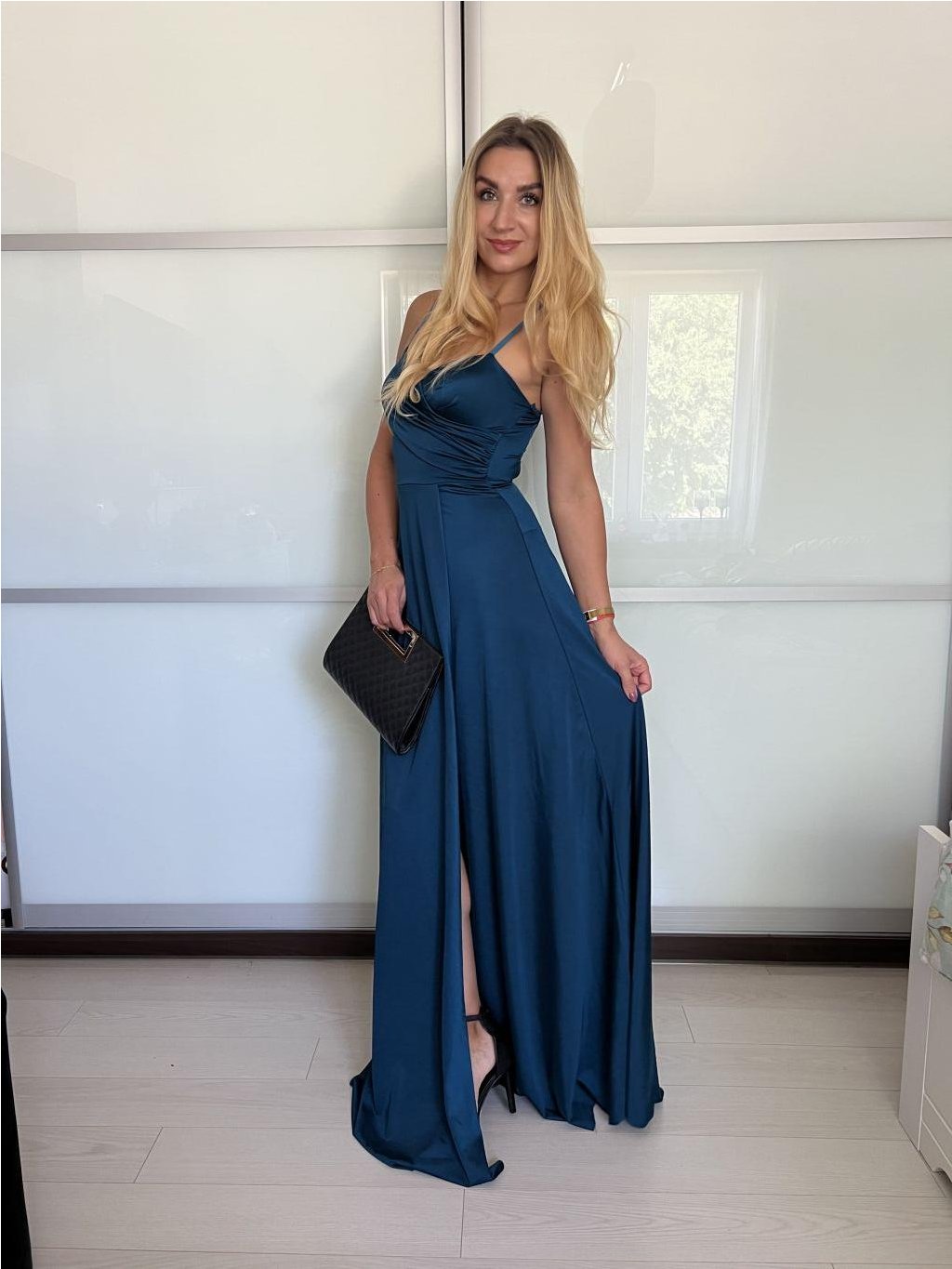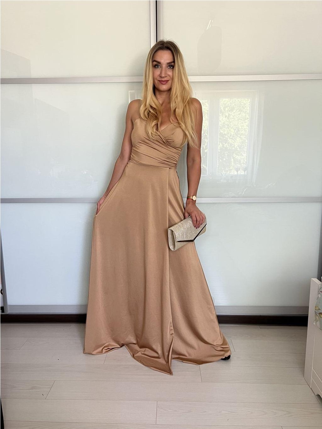 Šaty společenské saténové dlouhé na ramínka dámské (XS/S/M ONE SIZE) ITALSKÁ MÓDA IMM25M40243