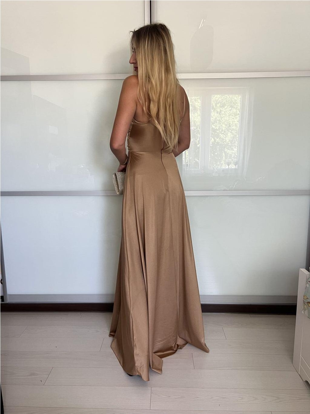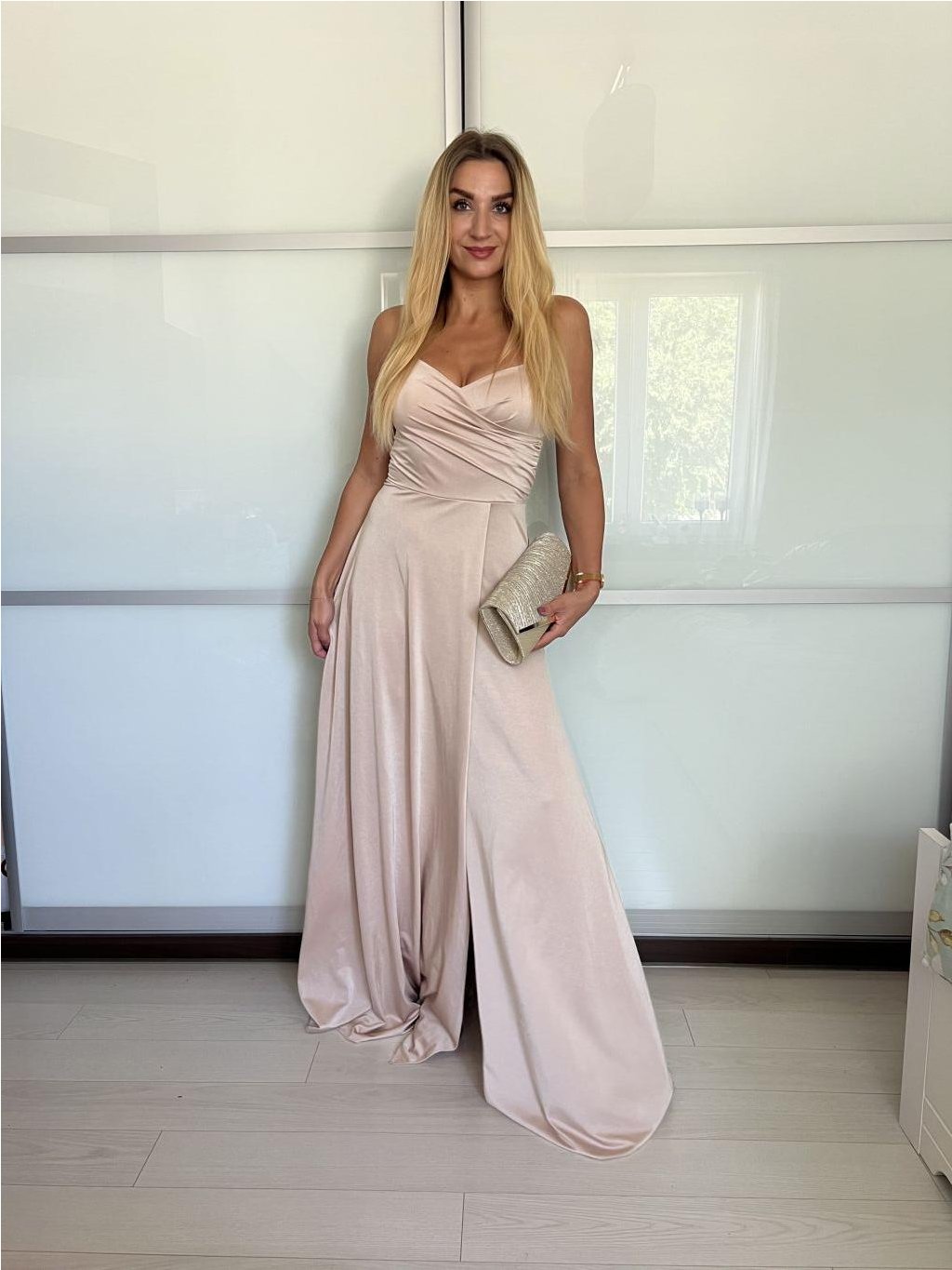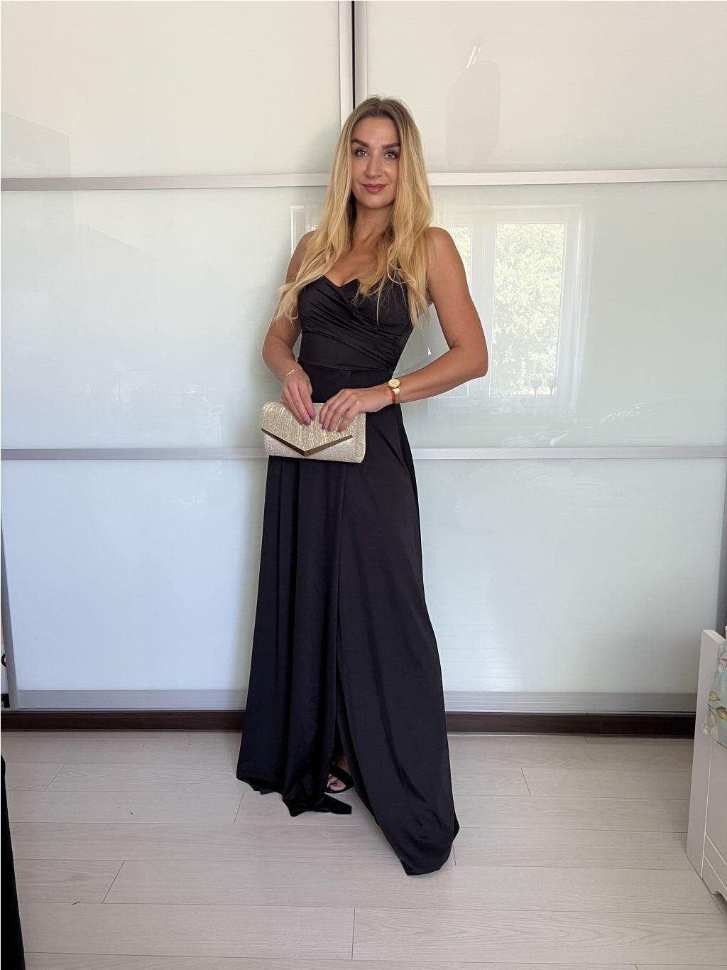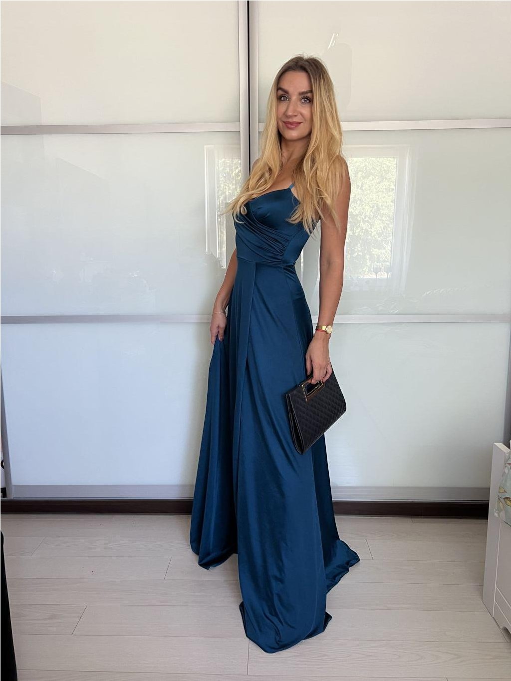 Šaty společenské saténové dlouhé na ramínka dámské (XS/S/M ONE SIZE) ITALSKÁ MÓDA IMM25M40243