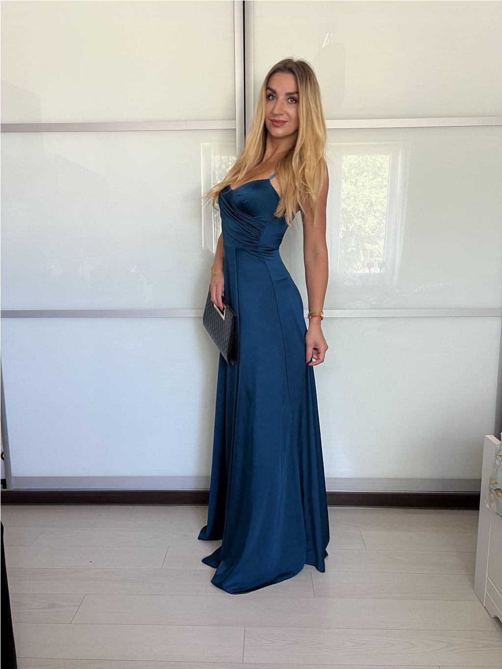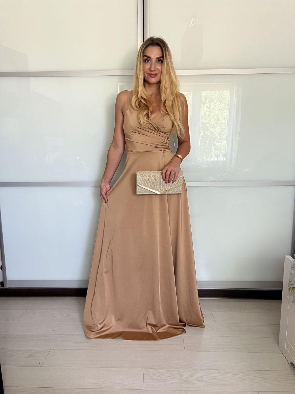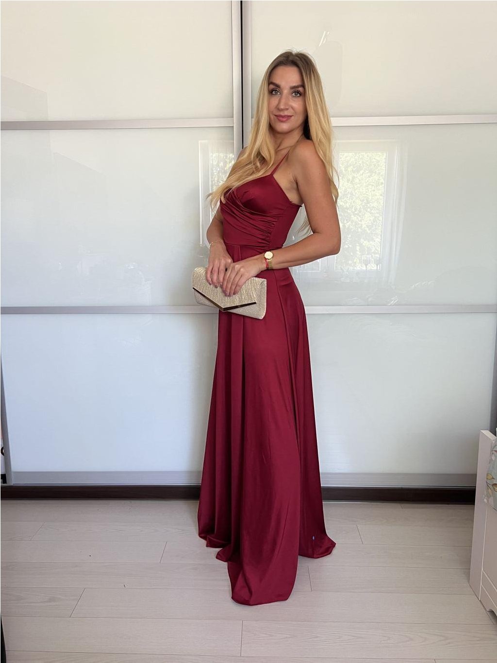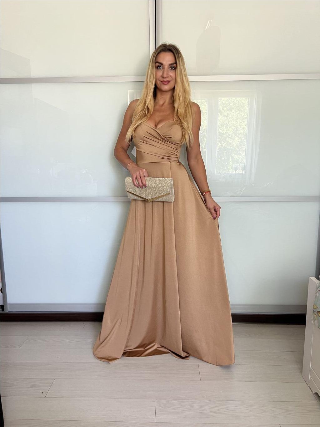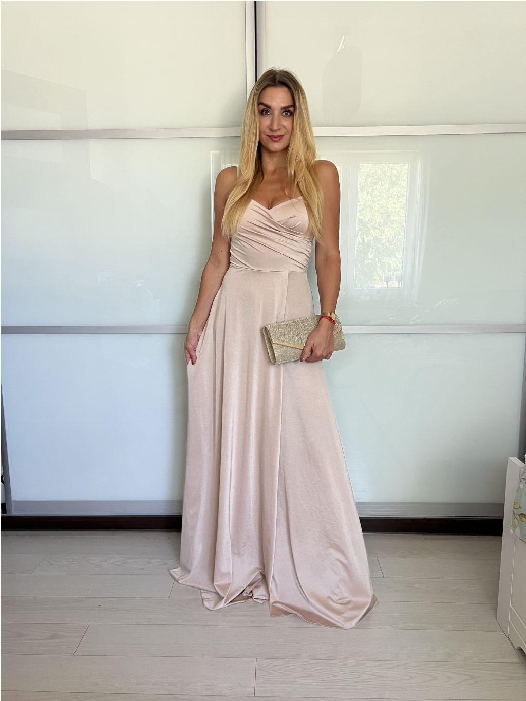 Šaty společenské saténové dlouhé na ramínka dámské (XS/S/M ONE SIZE) ITALSKÁ MÓDA IMM25M40243