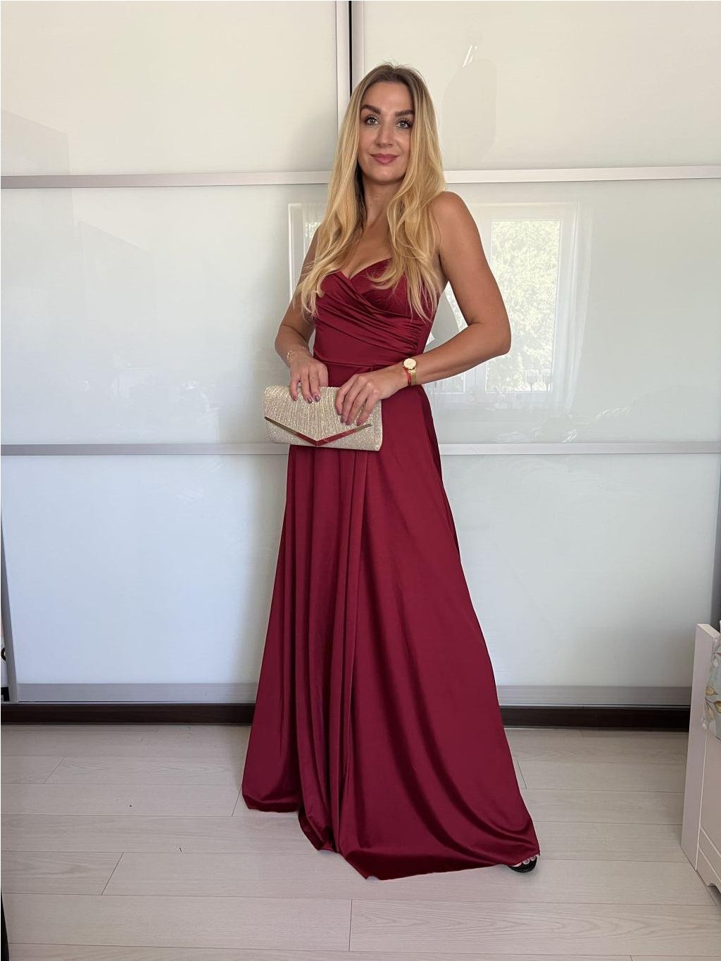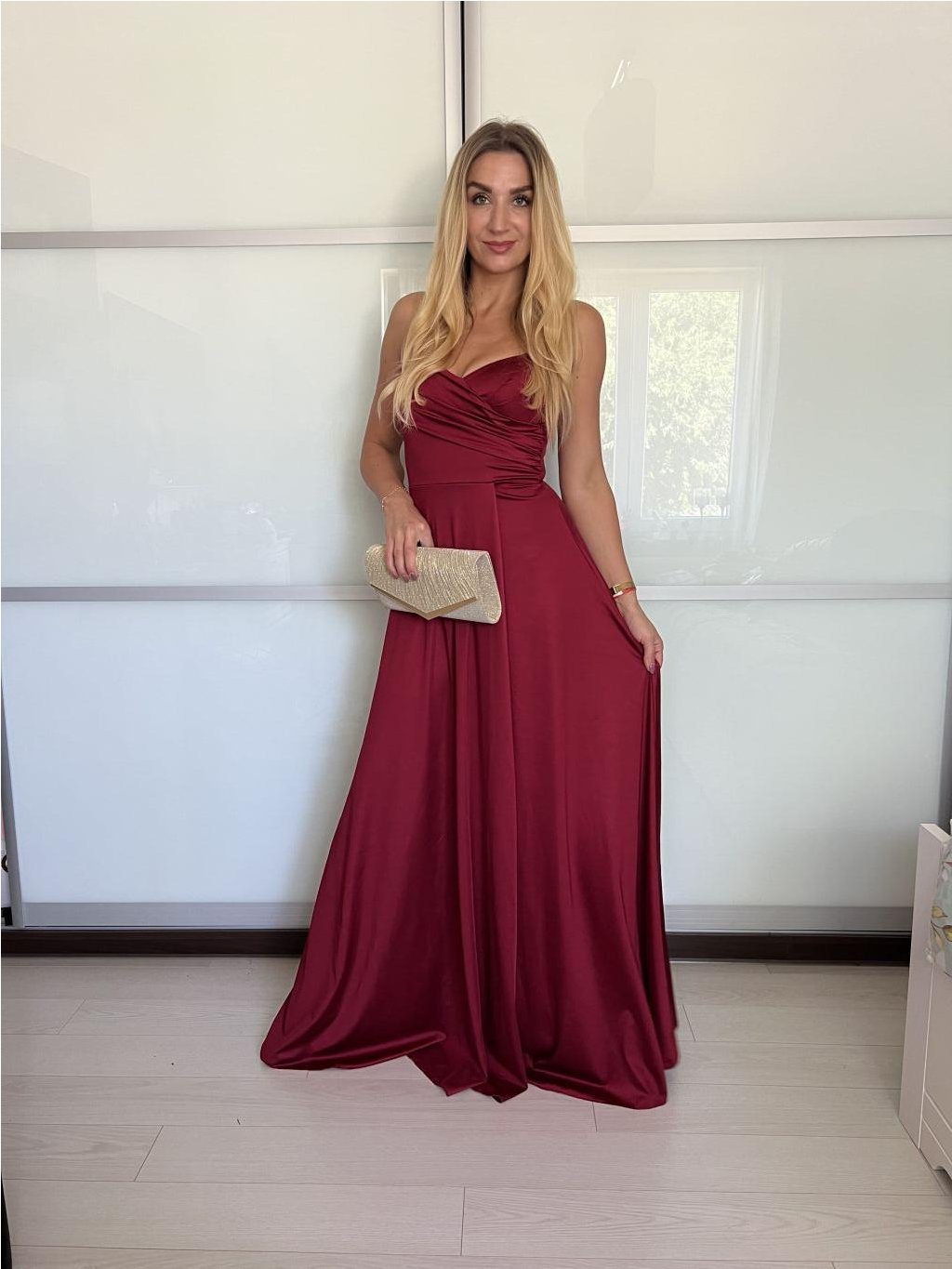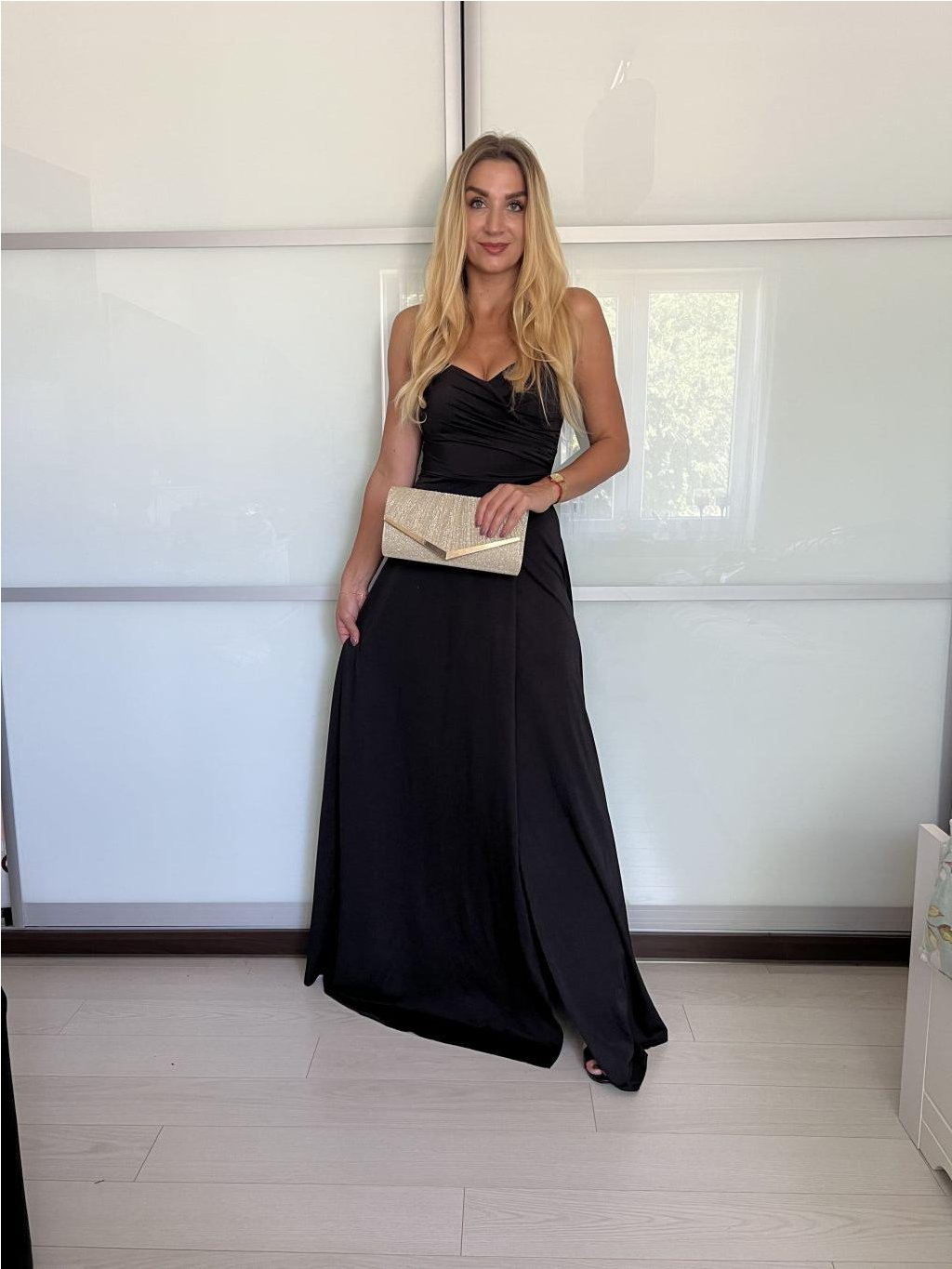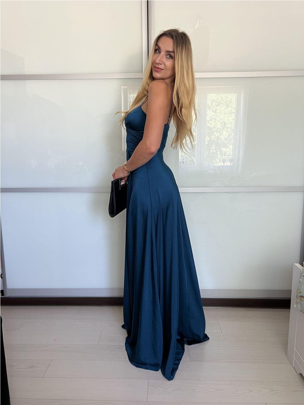 Šaty společenské saténové dlouhé na ramínka dámské (XS/S/M ONE SIZE) ITALSKÁ MÓDA IMM25M40243