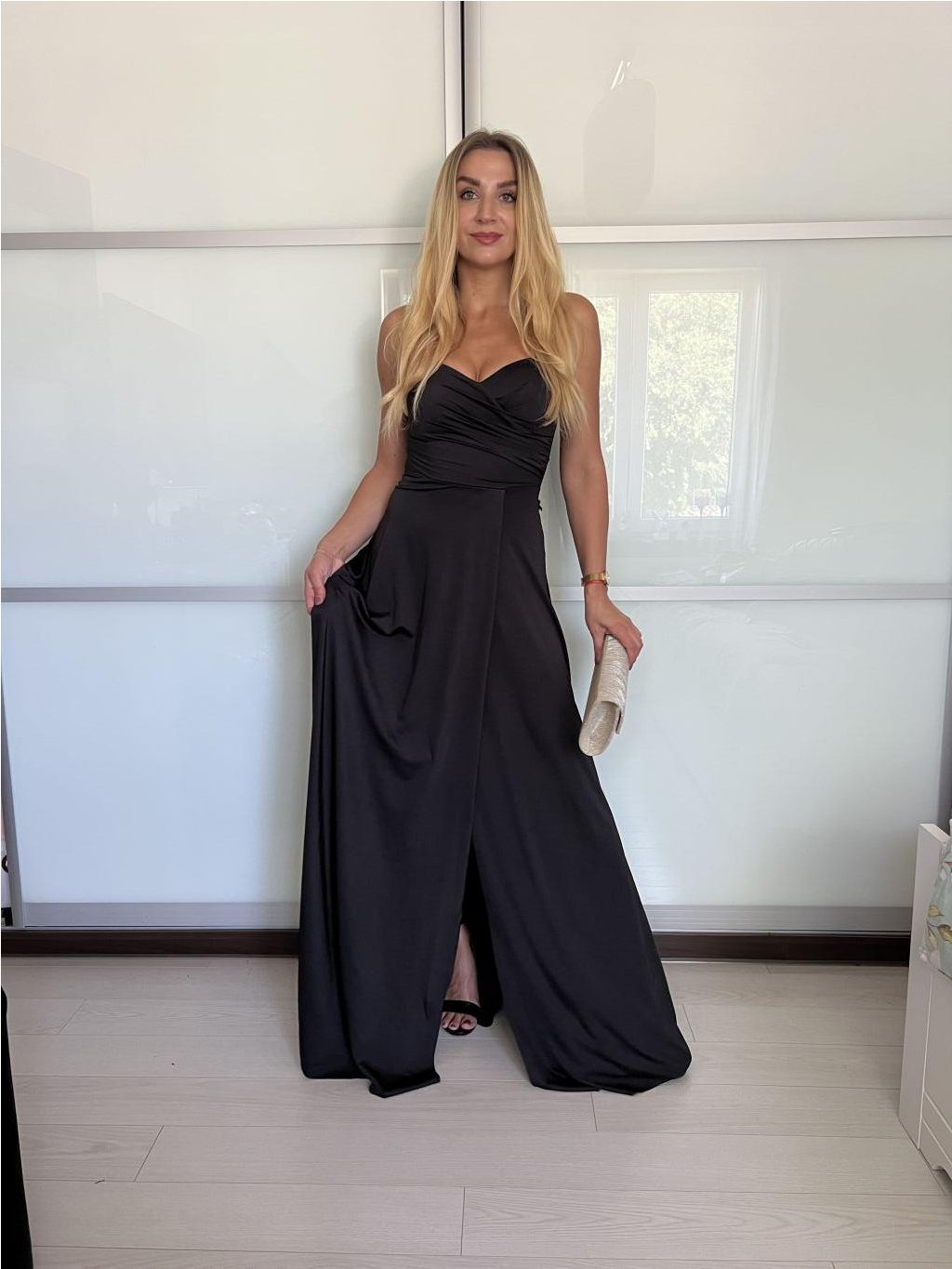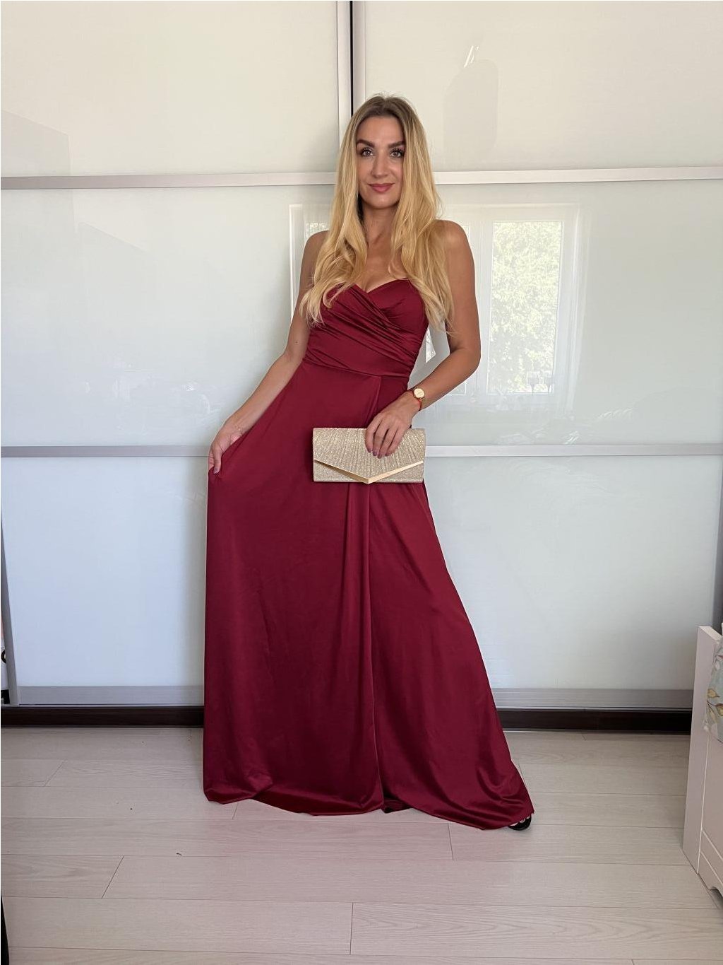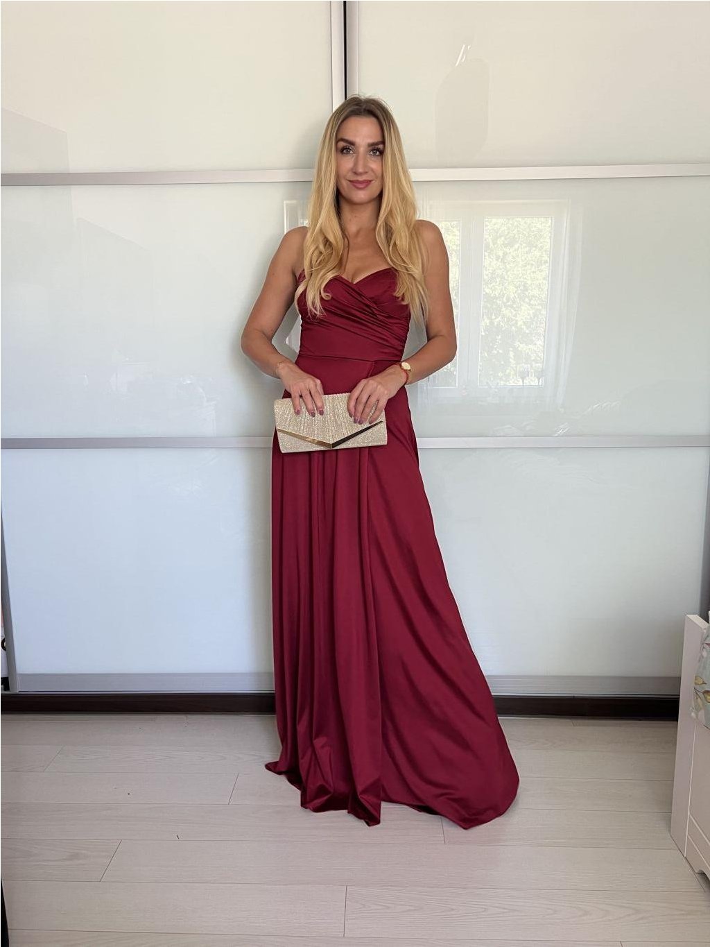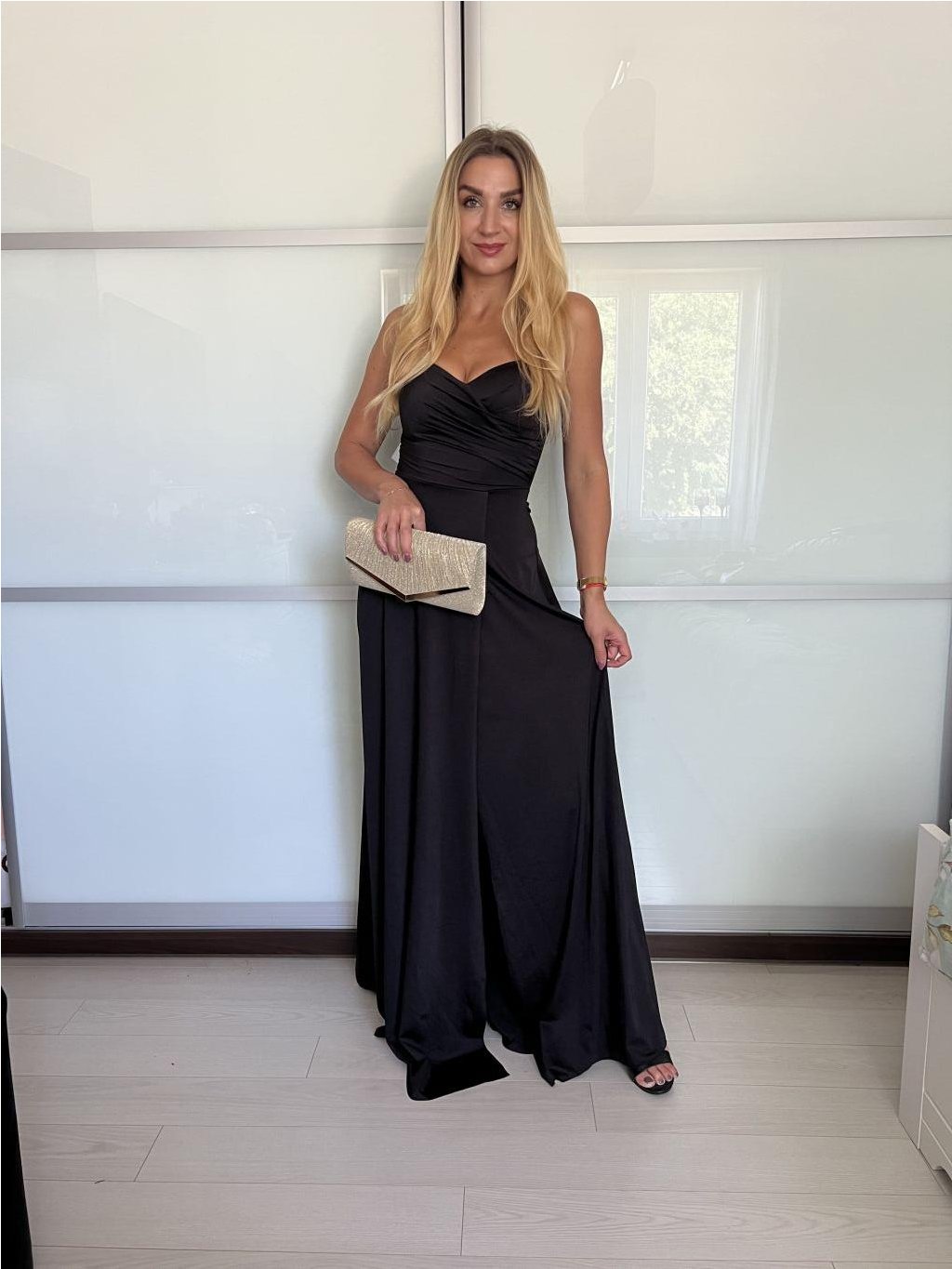 Šaty společenské saténové dlouhé na ramínka dámské (XS/S/M ONE SIZE) ITALSKÁ MÓDA IMM25M40243