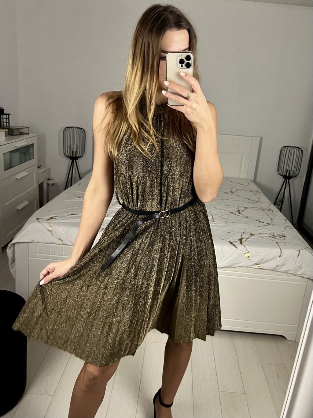 Krátké společenské třpytivé šaty s páskem