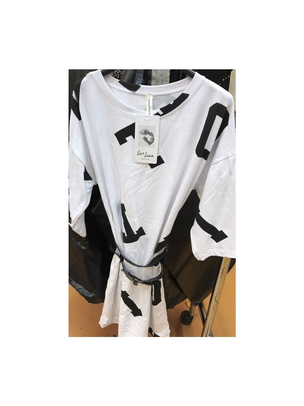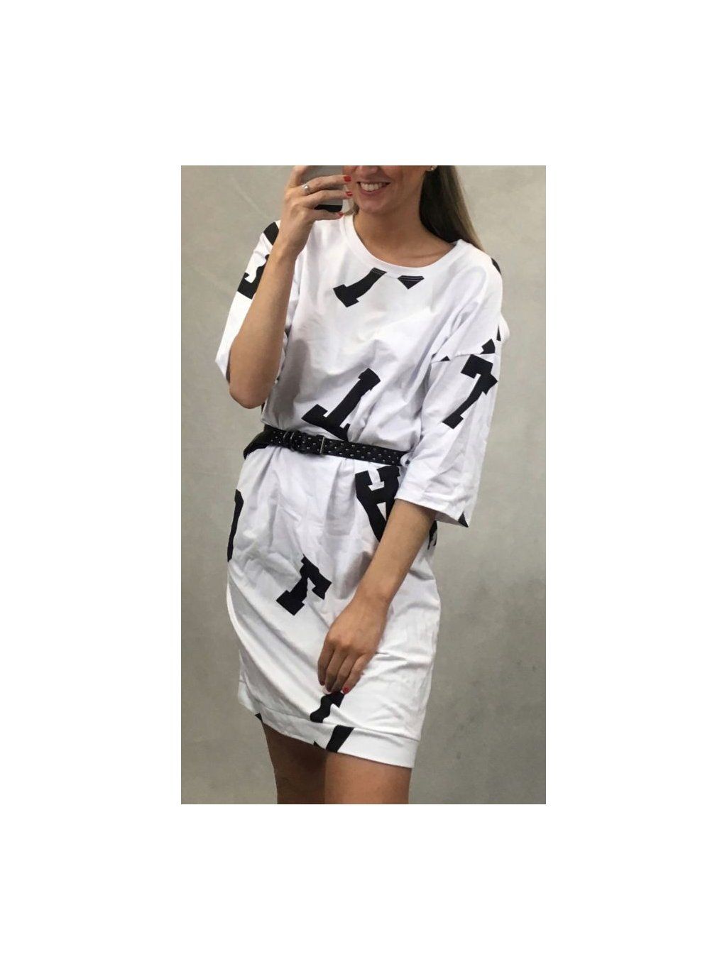 Šaty volnočasové 3/4 dlouhý rukáv dámské s páskem (UNI S-L) ITALSKÁ MÓDA IM420279