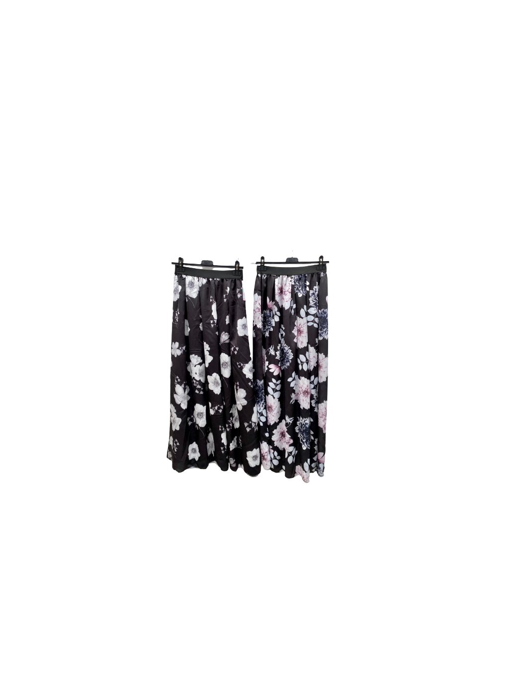 Dlouhá saténová sukně s květinovým vzorem. V pase na gumu.