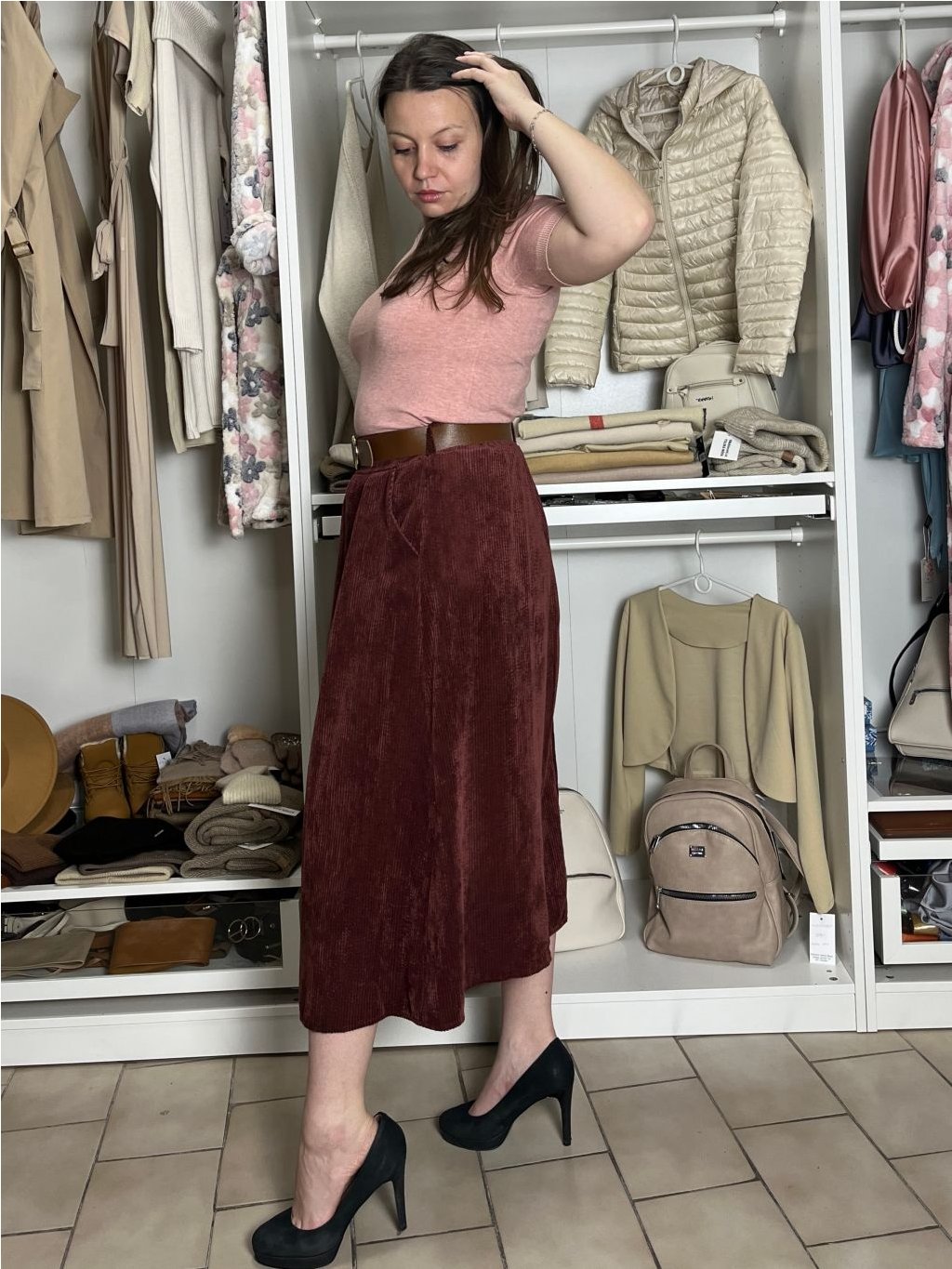 Sukně manžestrová s páskem dámská (S/M/L ONE SIZE) ITALSKÁ MÓDA IMPLU2552123/DU