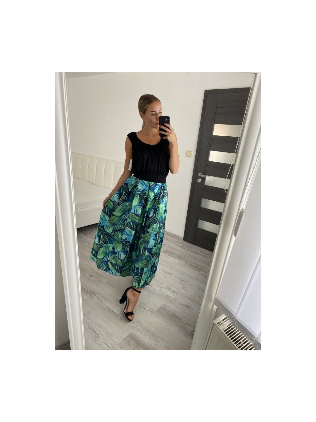 Sukně maxi dlouhá saténová dámská vzor (S/M ONE SIZE) ITALSKÁ MÓDA IMM22552