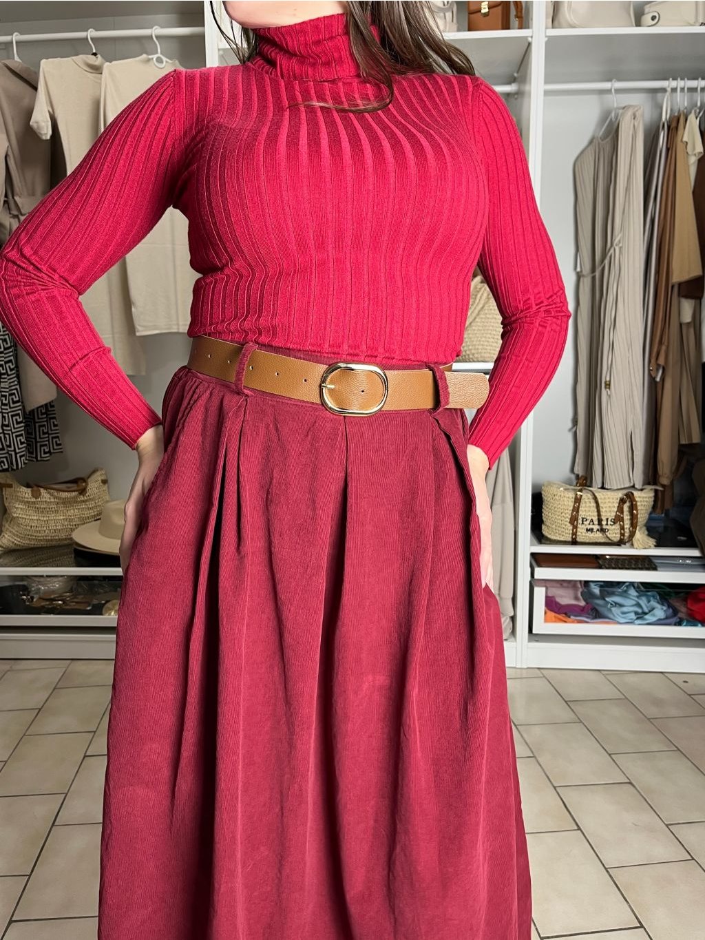 Sukně s páskem manžestrová dámská MONA (S/M/L ONE SIZE) ITALSKá MóDA IMSM251155/DU