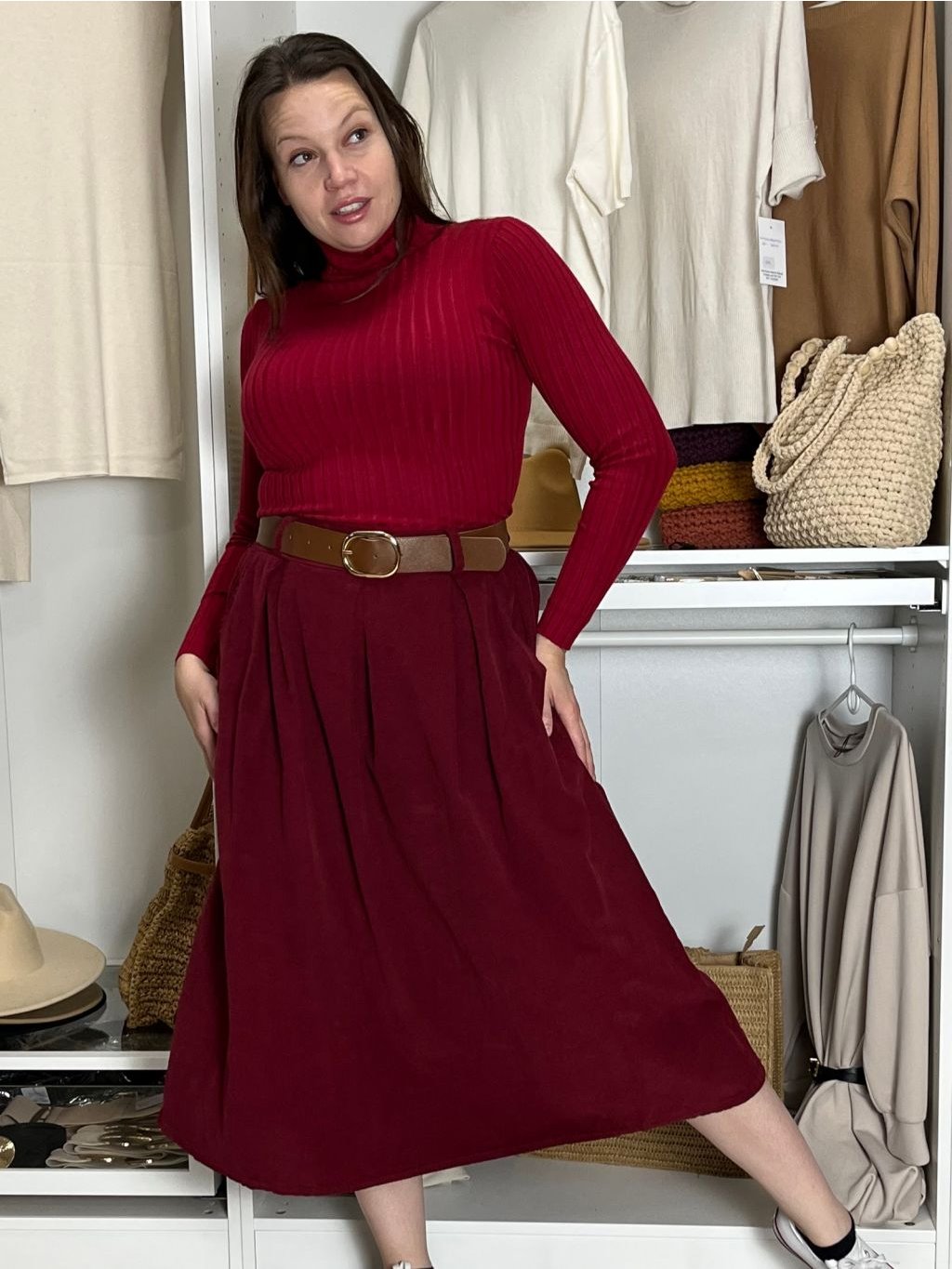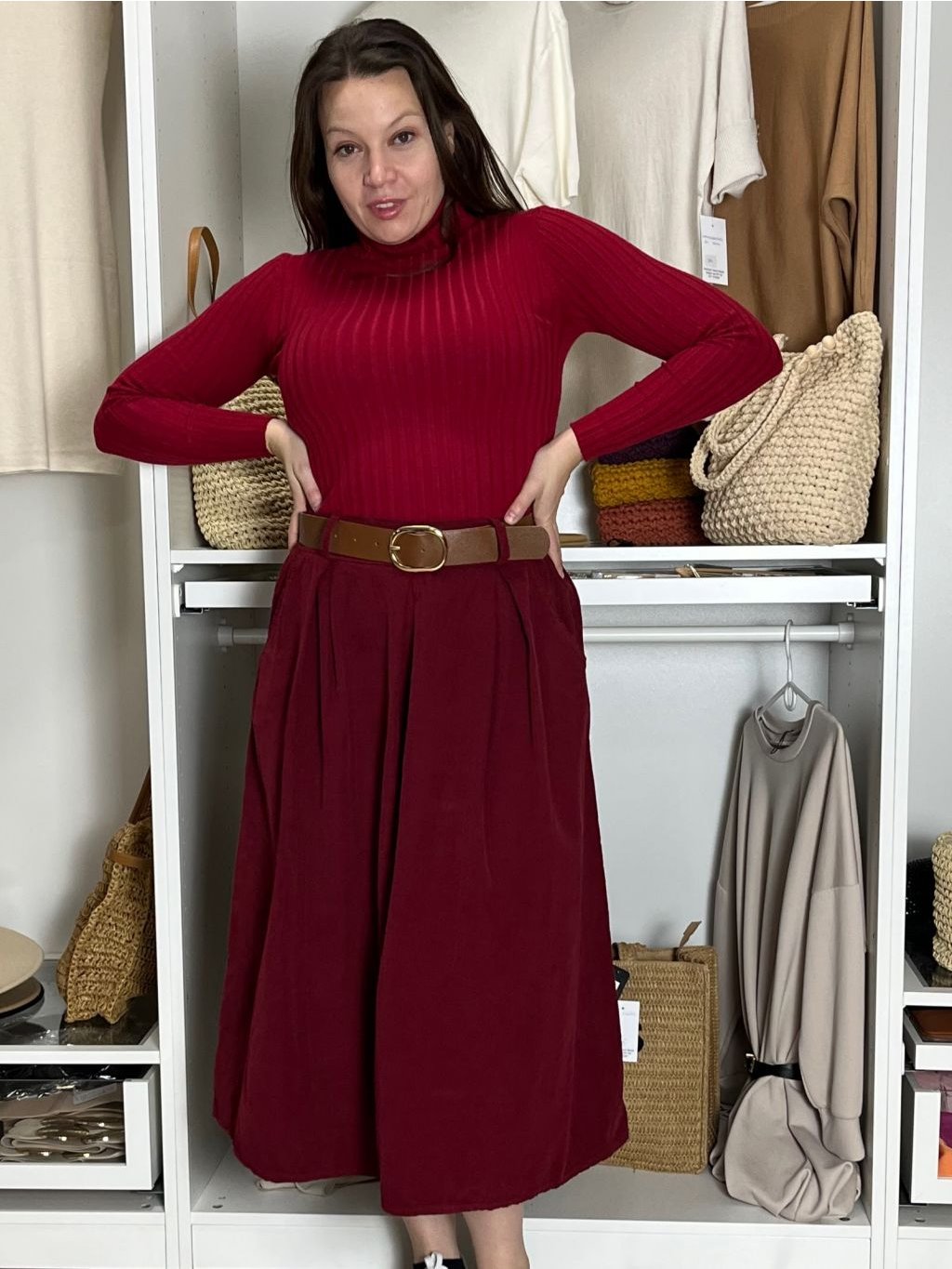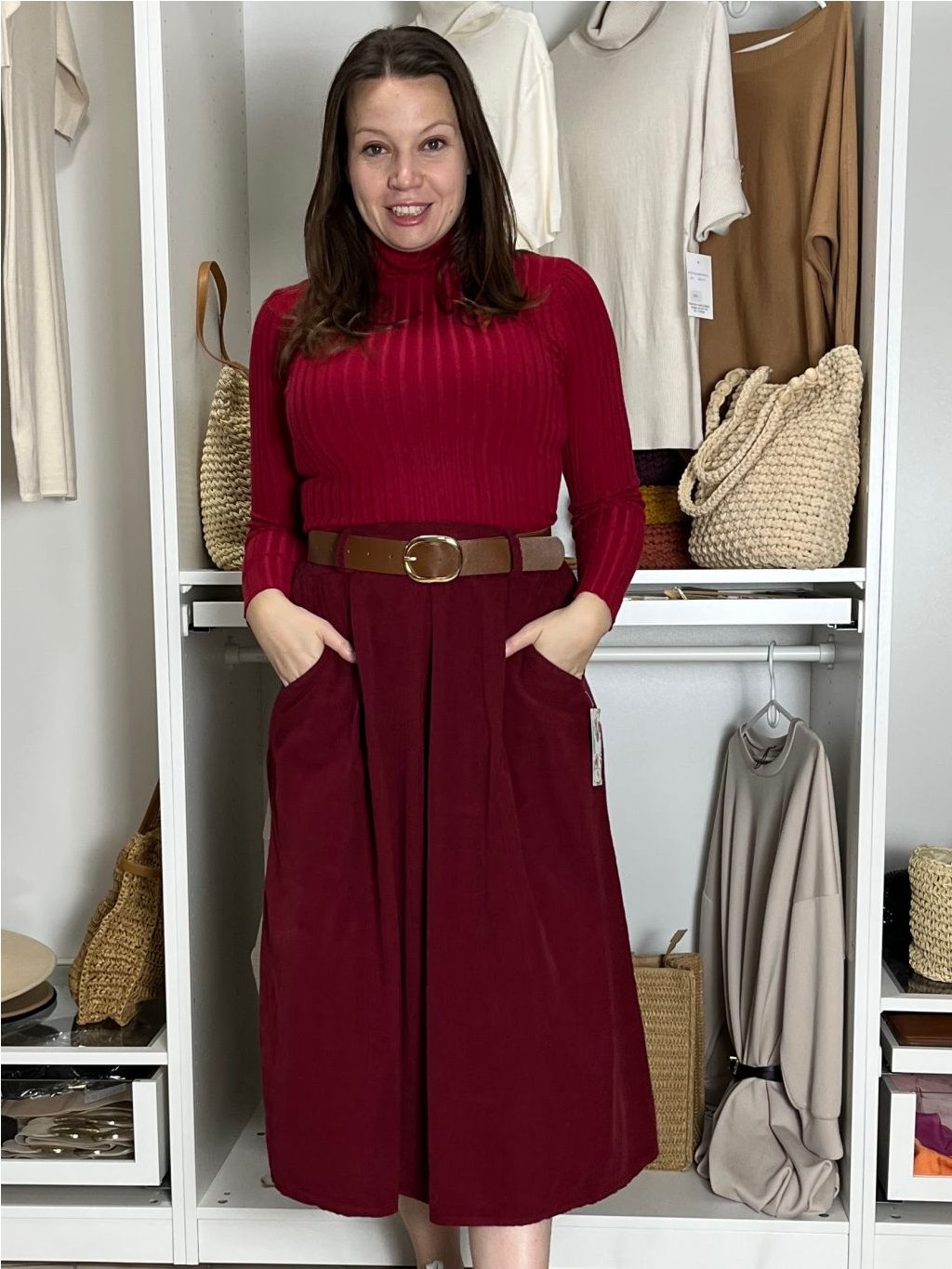 Volnočasová, elegantní, manžestrová sukně s páskem