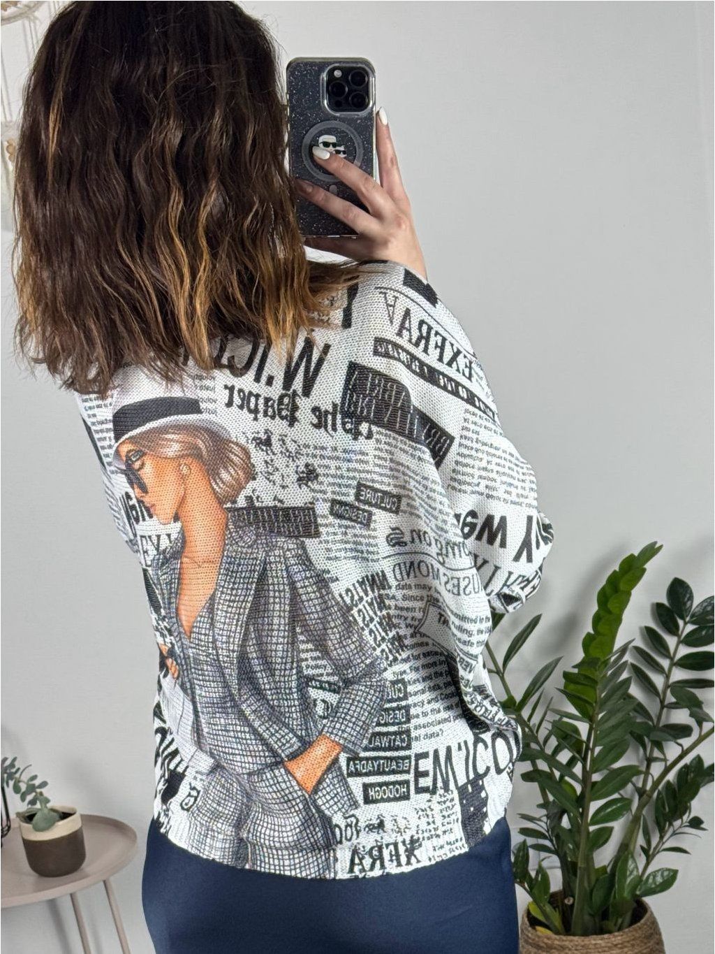 Svetr oversize tenký s potiskem dámský (S/M/L ONE SIZE) ITALSKá MóDA IMB22010/DR