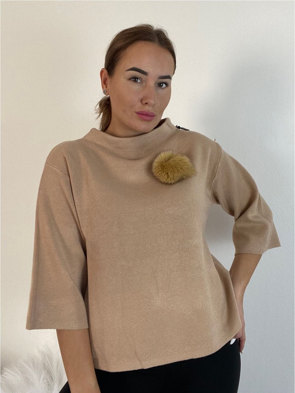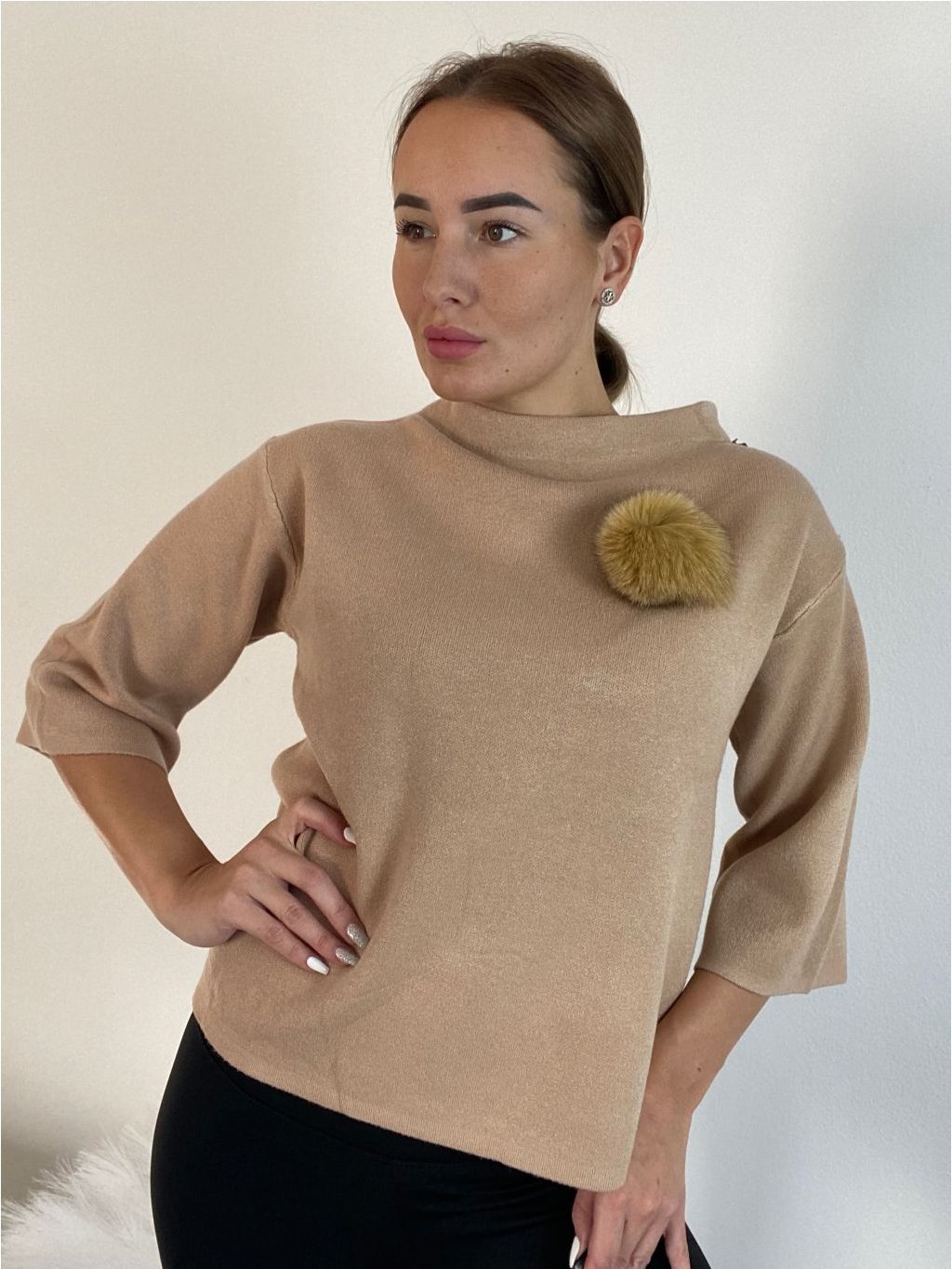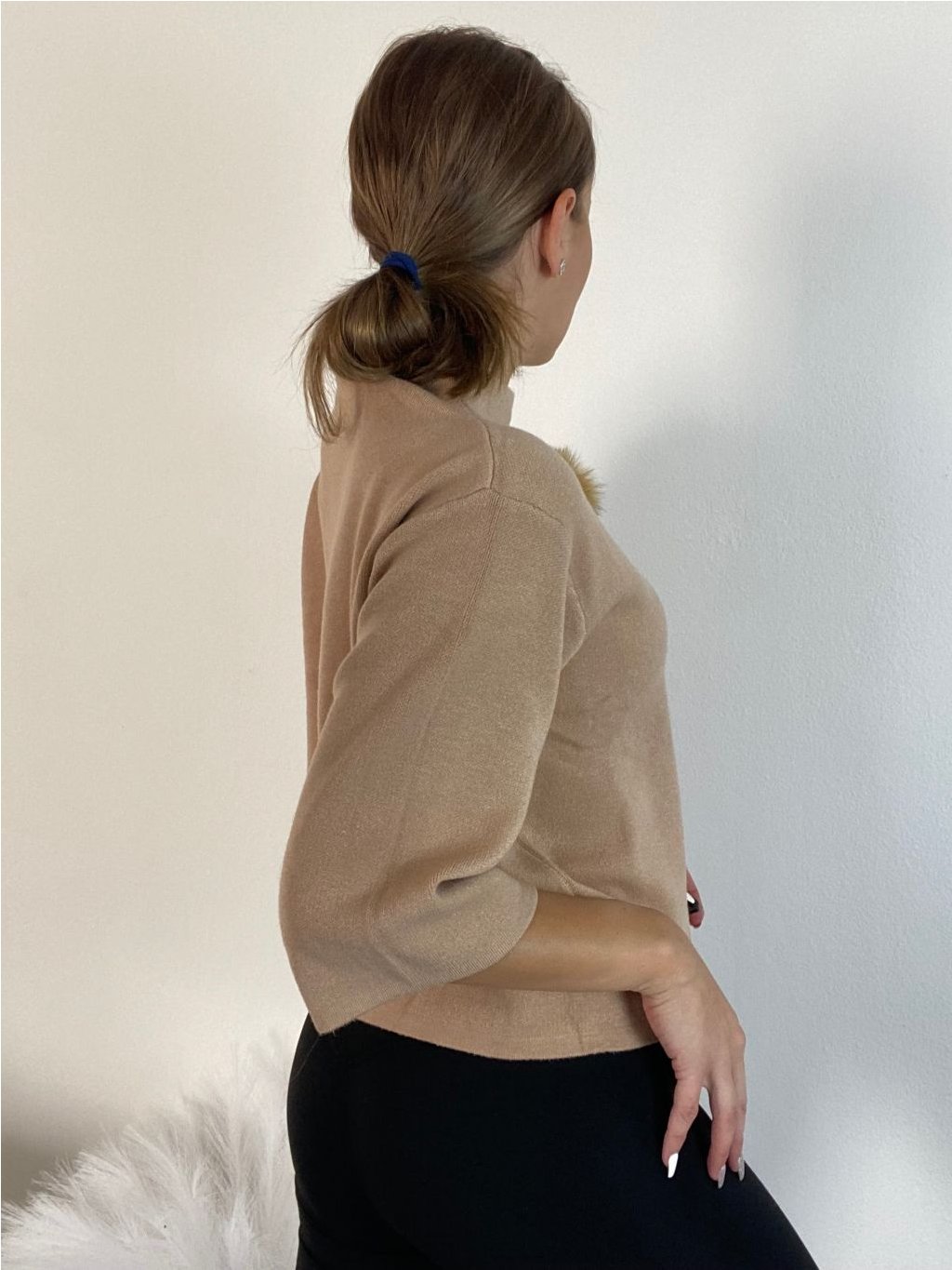 Úpletový teplý svetr s 3/4 dlouhým rukávem