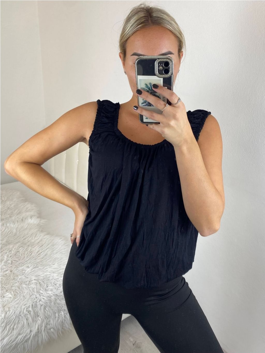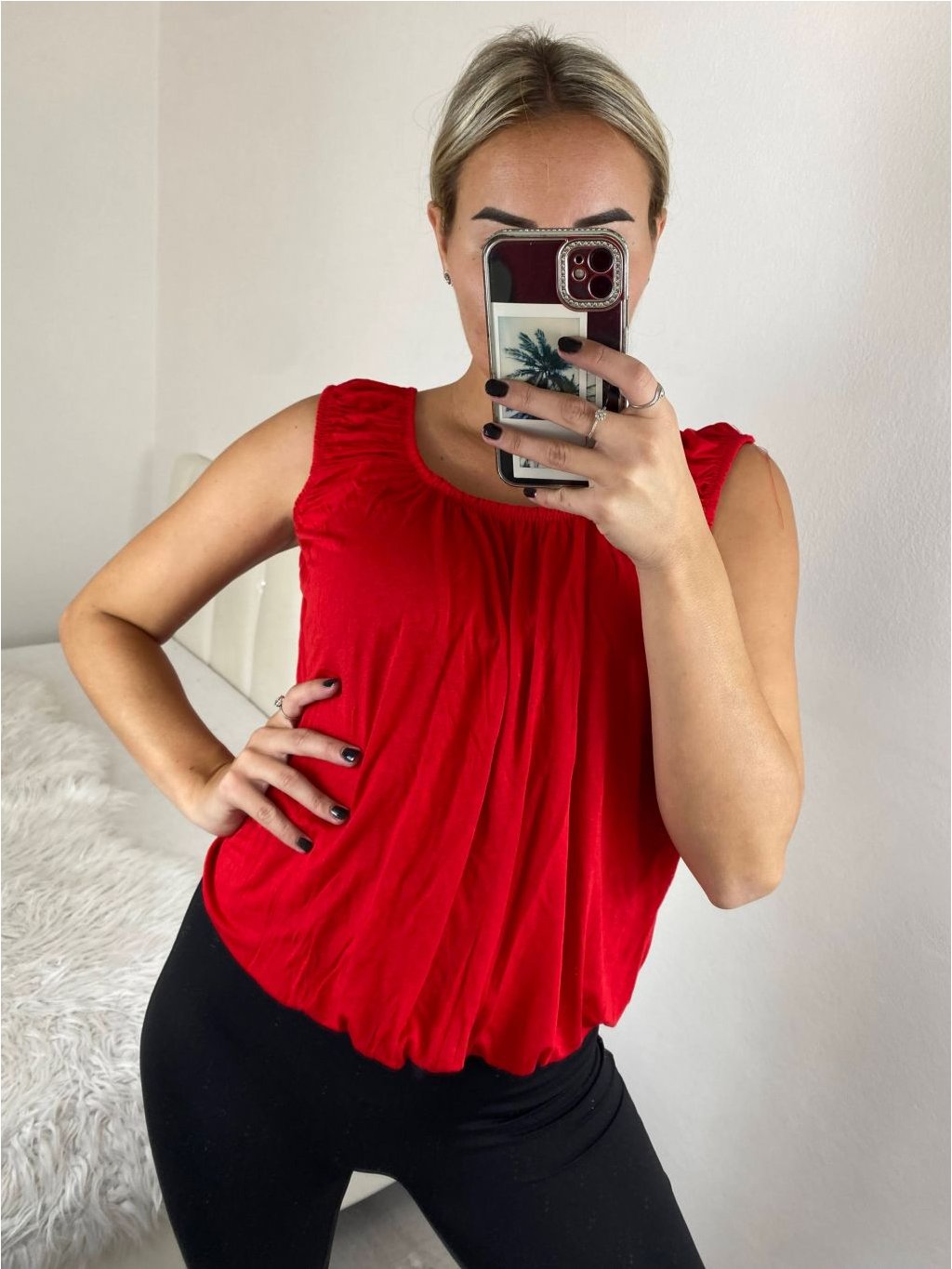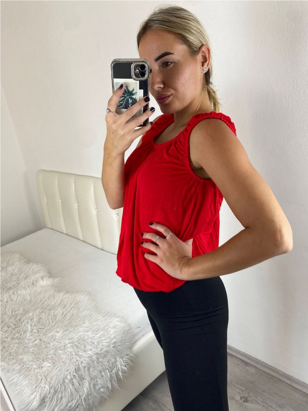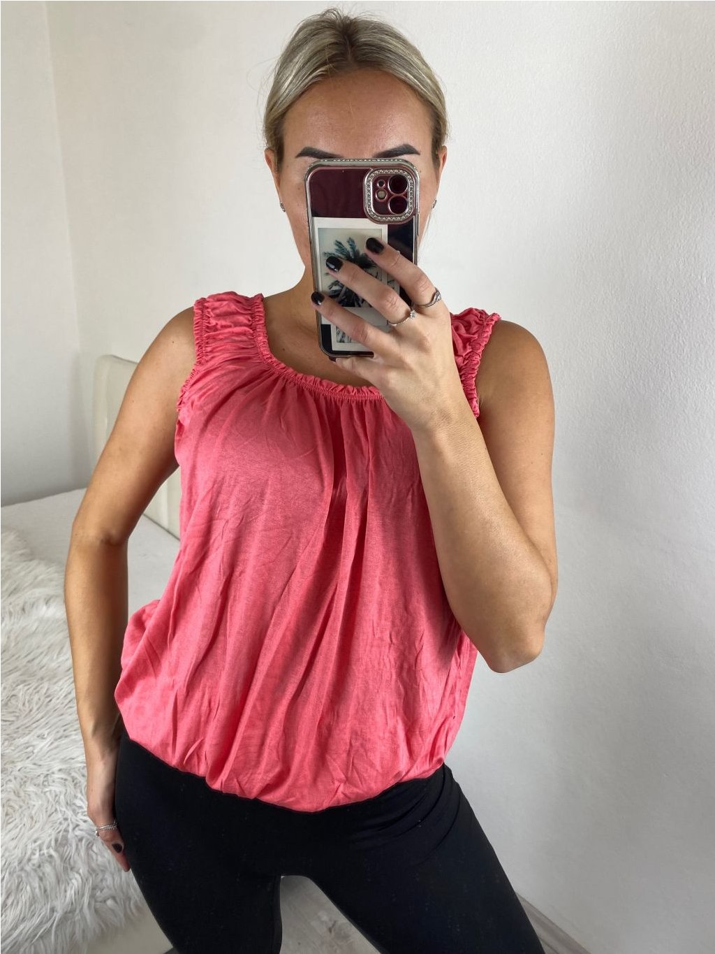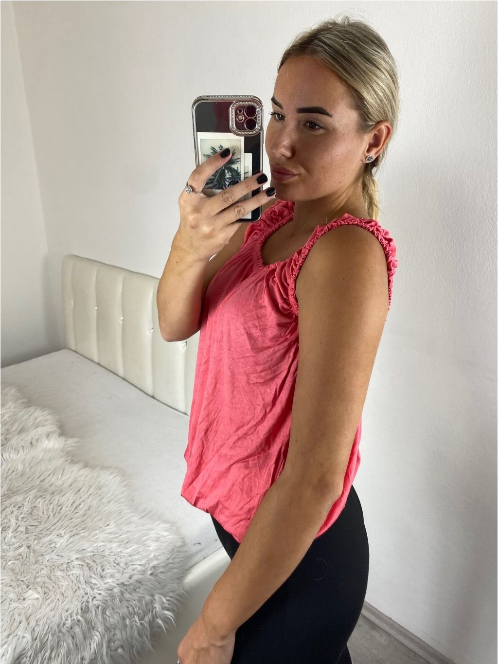 Letní tílko s řasením okolo výstřihu a rukávů.