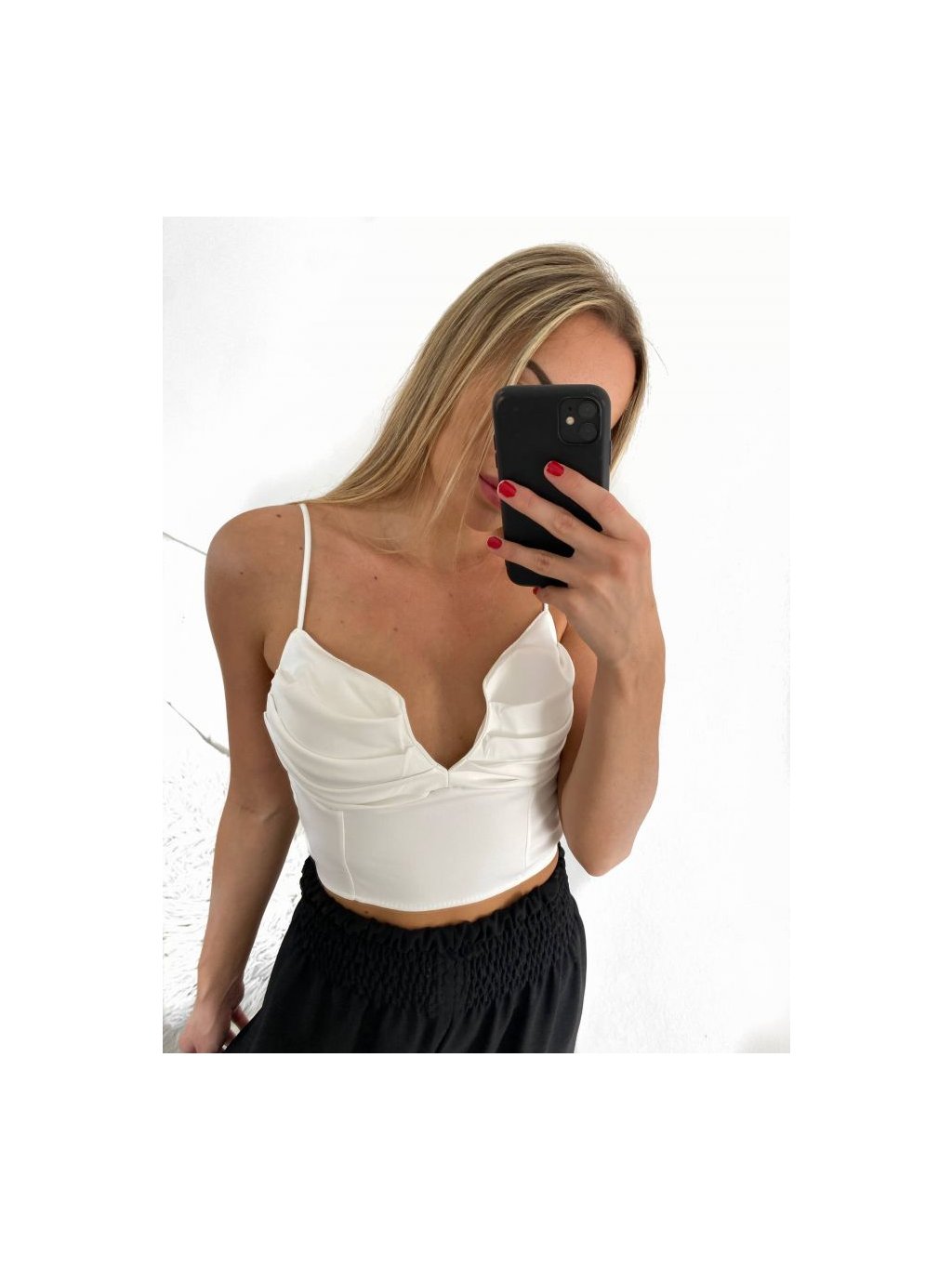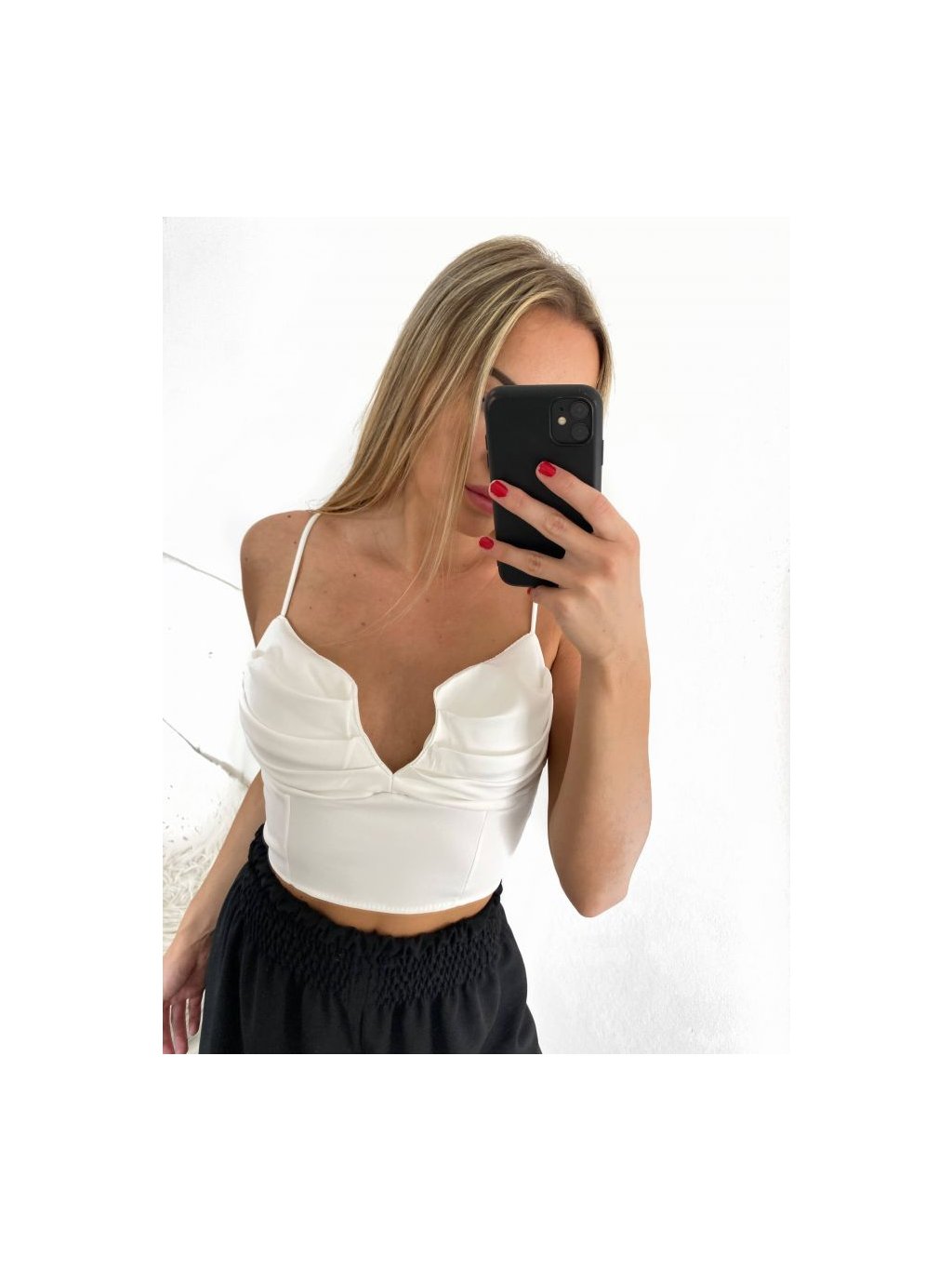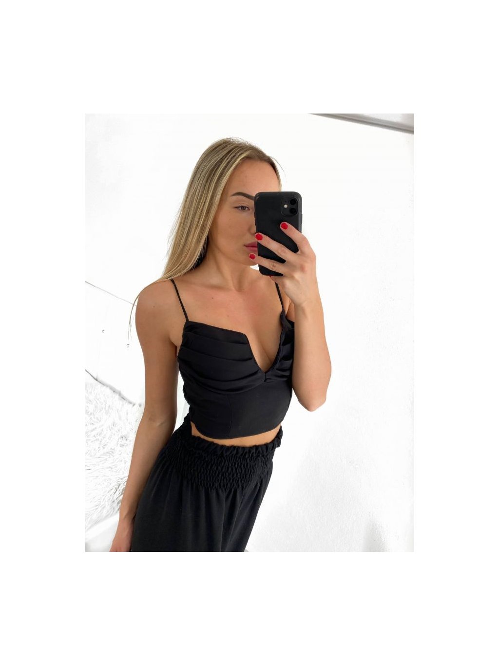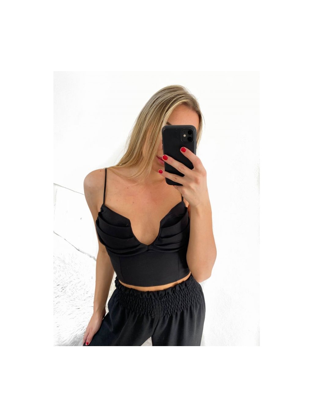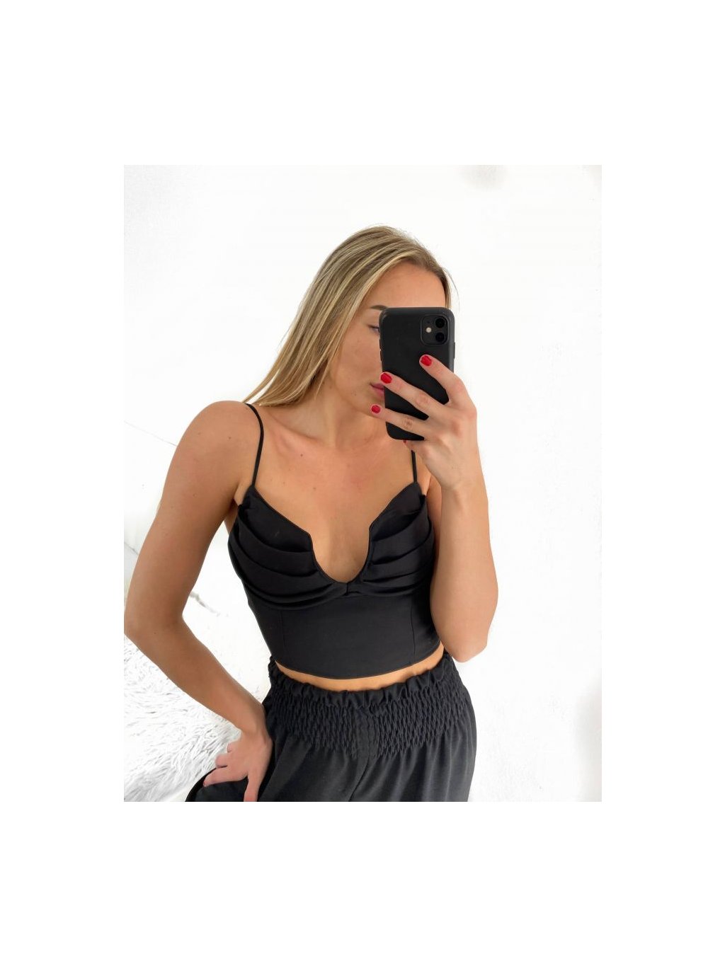 Croptop na ramínka s prsními vycpávkami. Top má vzadu žabičkování díky kterému je pružný přes prsa.