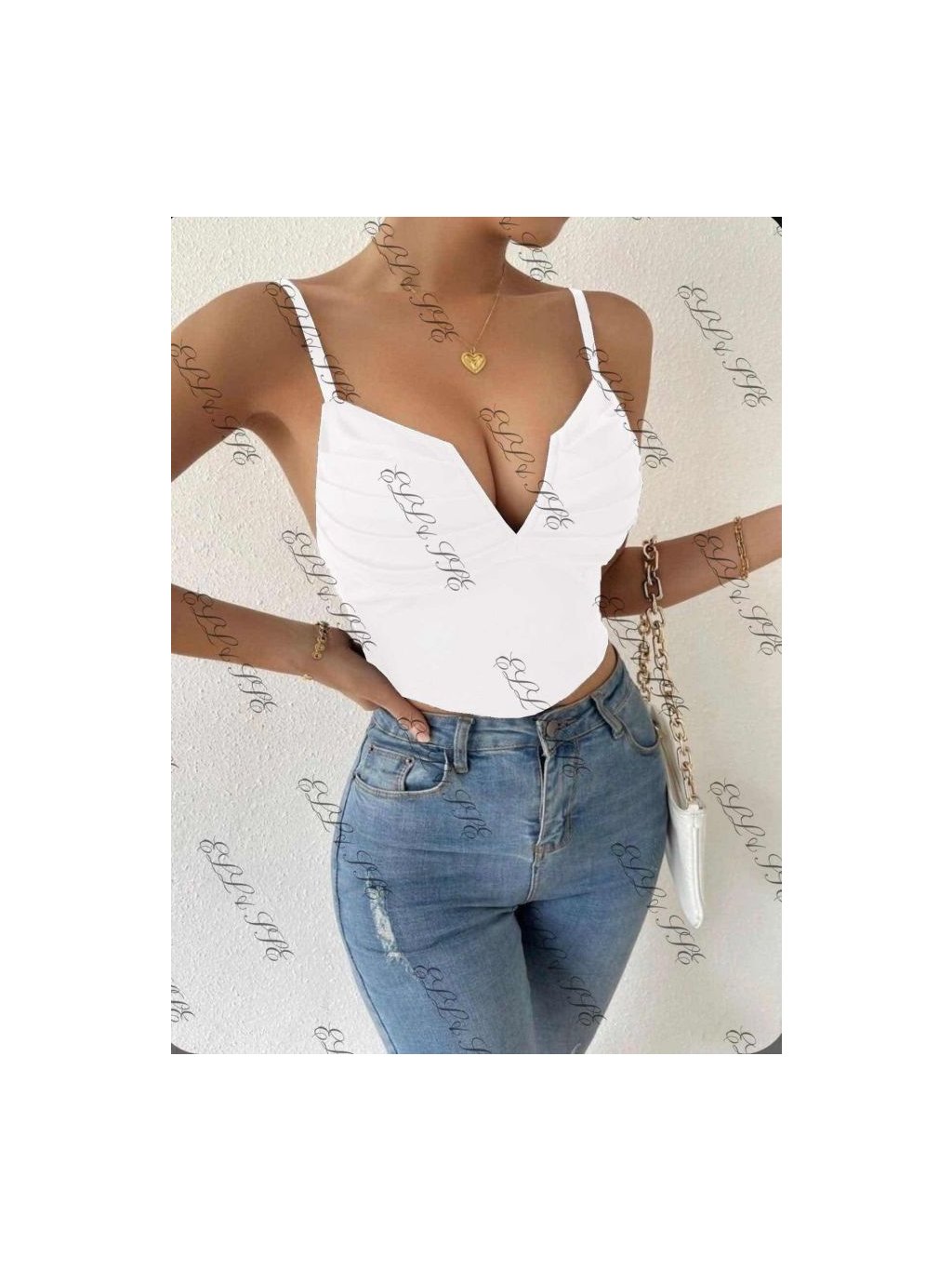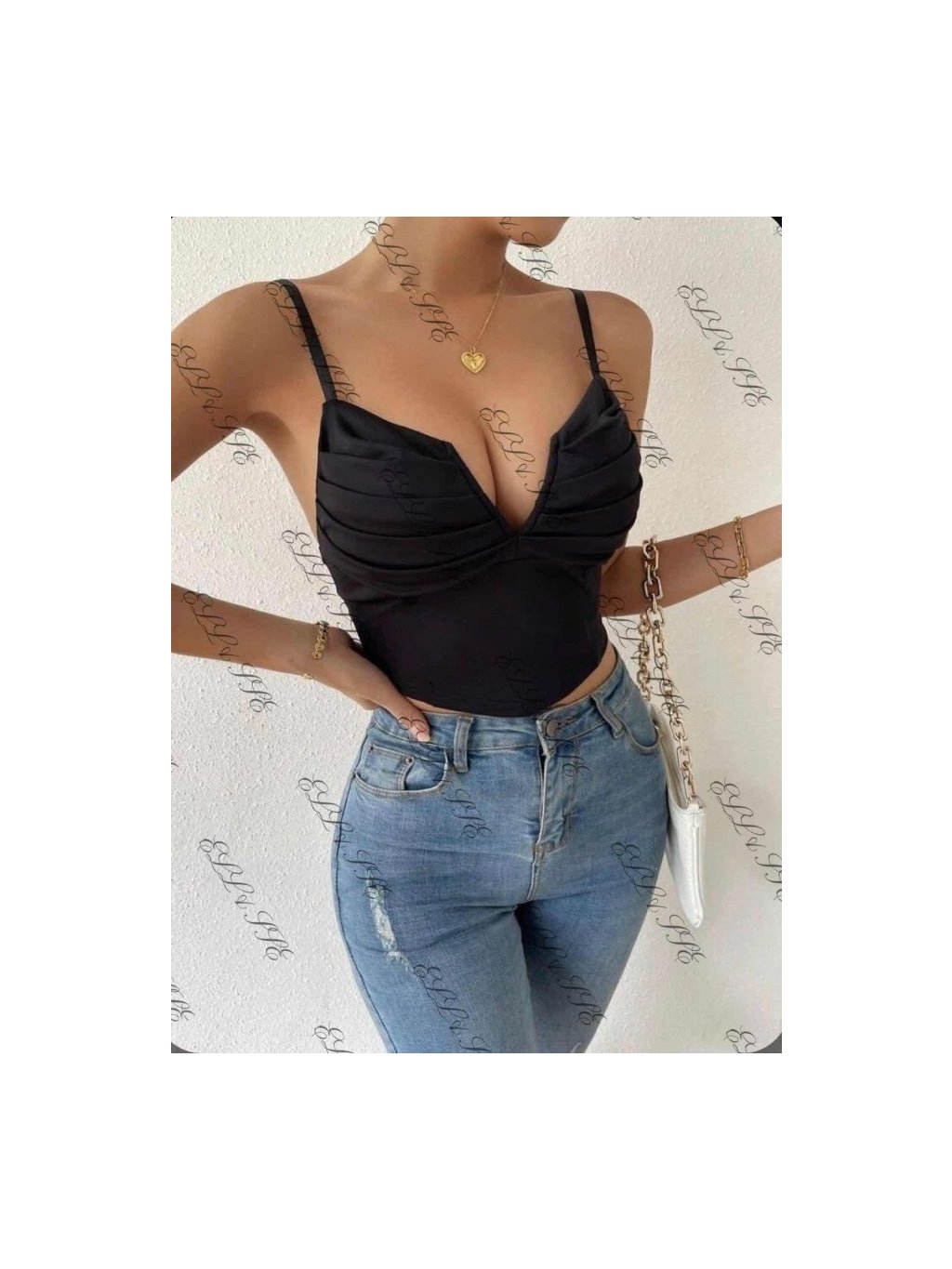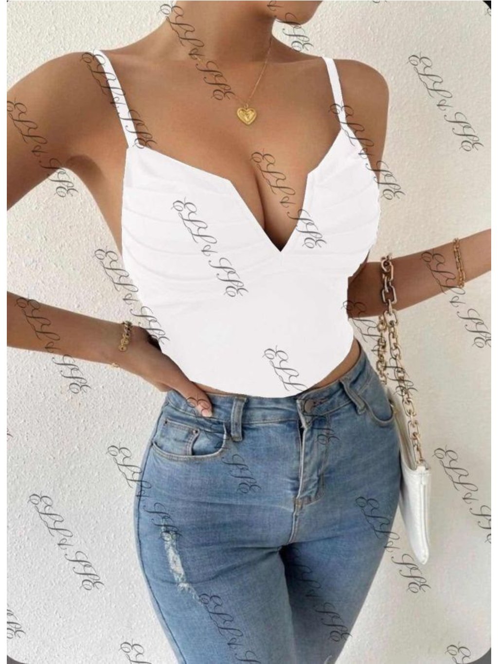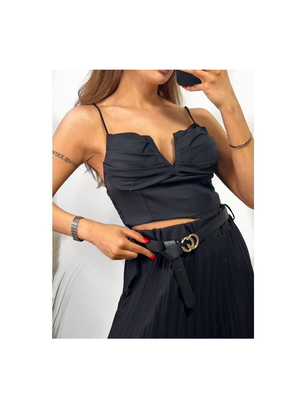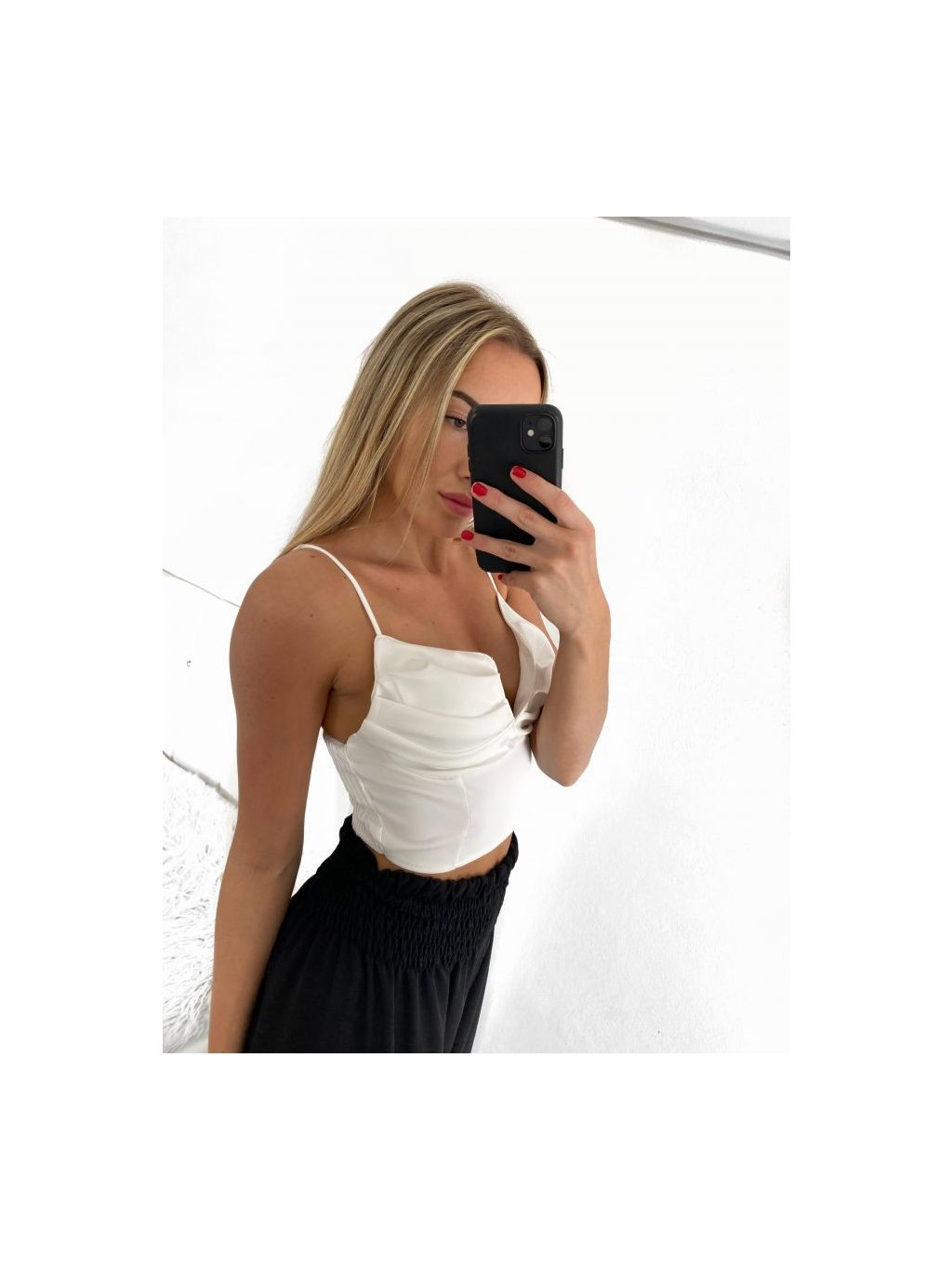 Croptop na ramínka s prsními vycpávkami. Top má vzadu žabičkování díky kterému je pružný přes prsa.