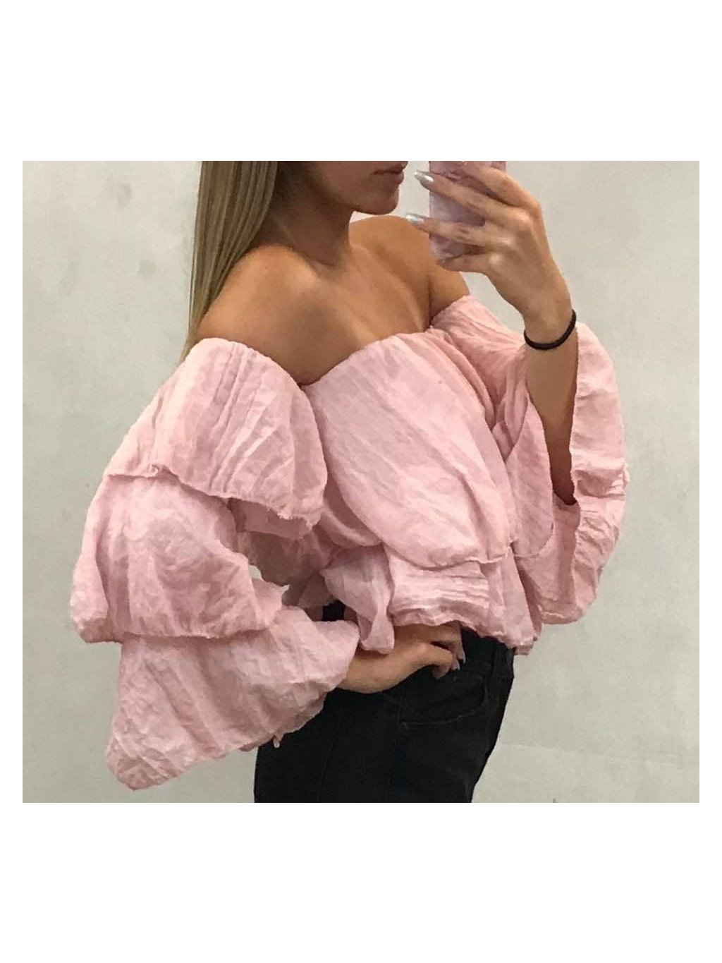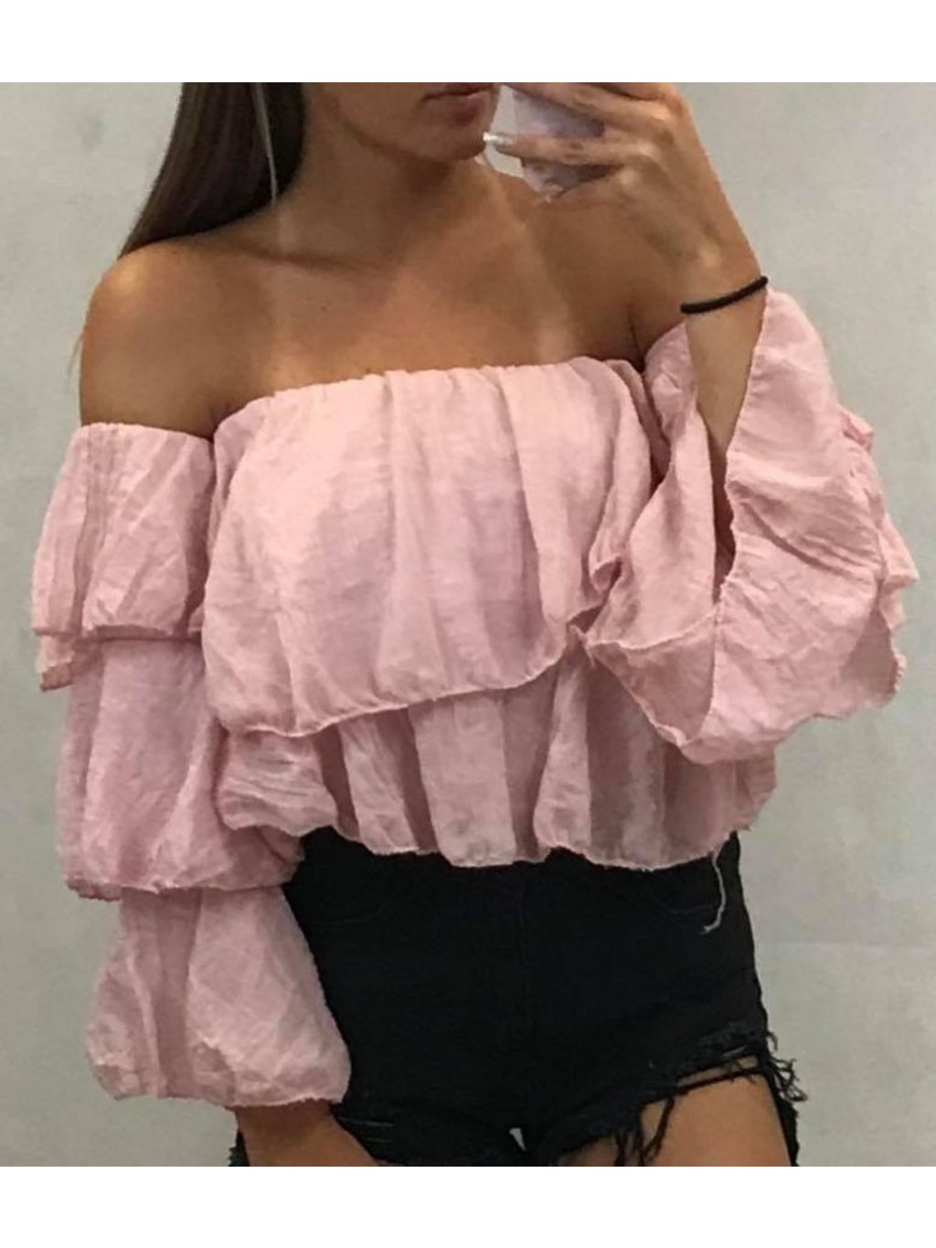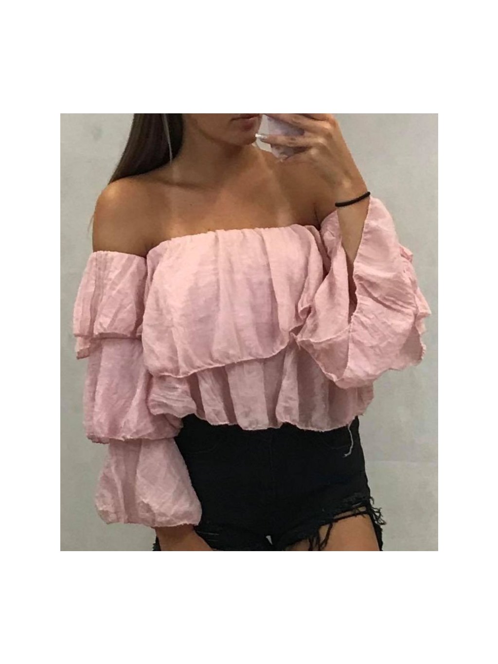 Tričko 3/4 rukáv volánky dámské (uni s/M) ITALSKÁ MÓDA IMT19296