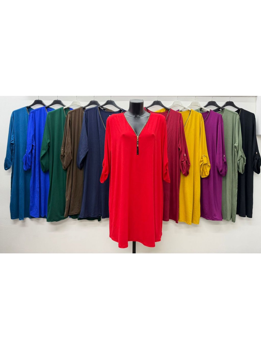 Prodloužená tunika na zip 3/4 rukáv