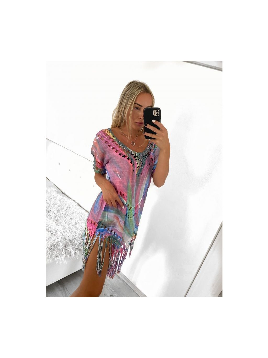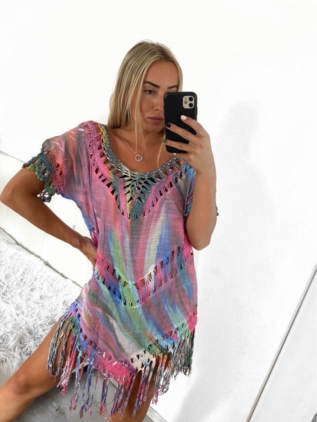 Tunika přehoz oversize plážová přes plavky krátký rukáv dámská