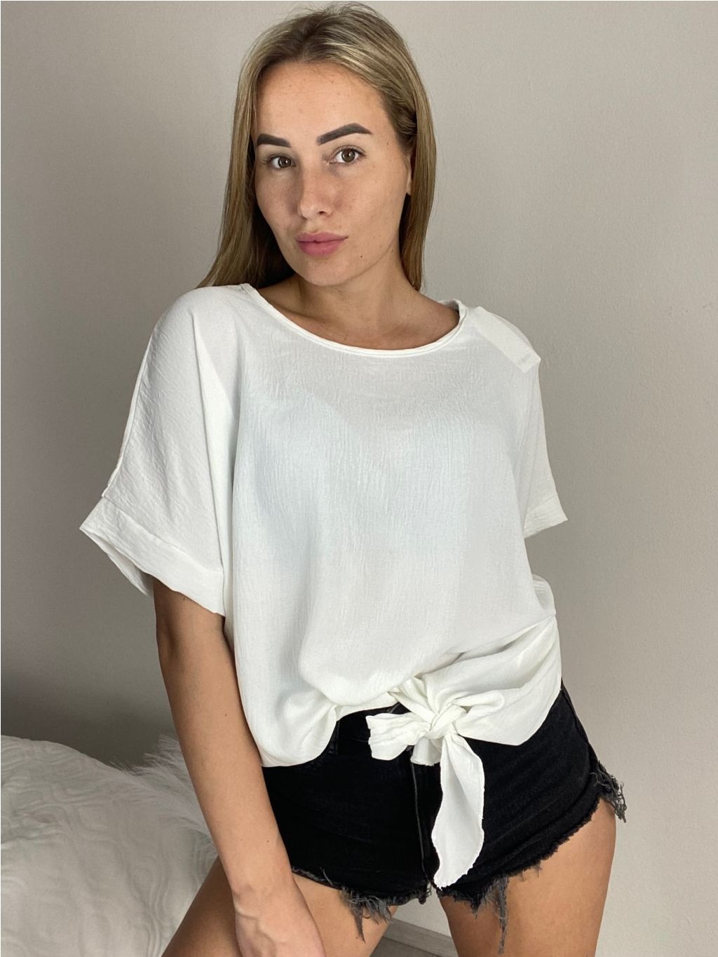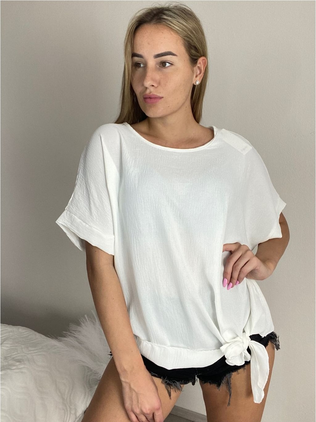 Tunika s přívěskem krátký rukáv dámská nadrozměr (50/52/54 ONE SIZE) ITALSKÁ MÓDA IM425031