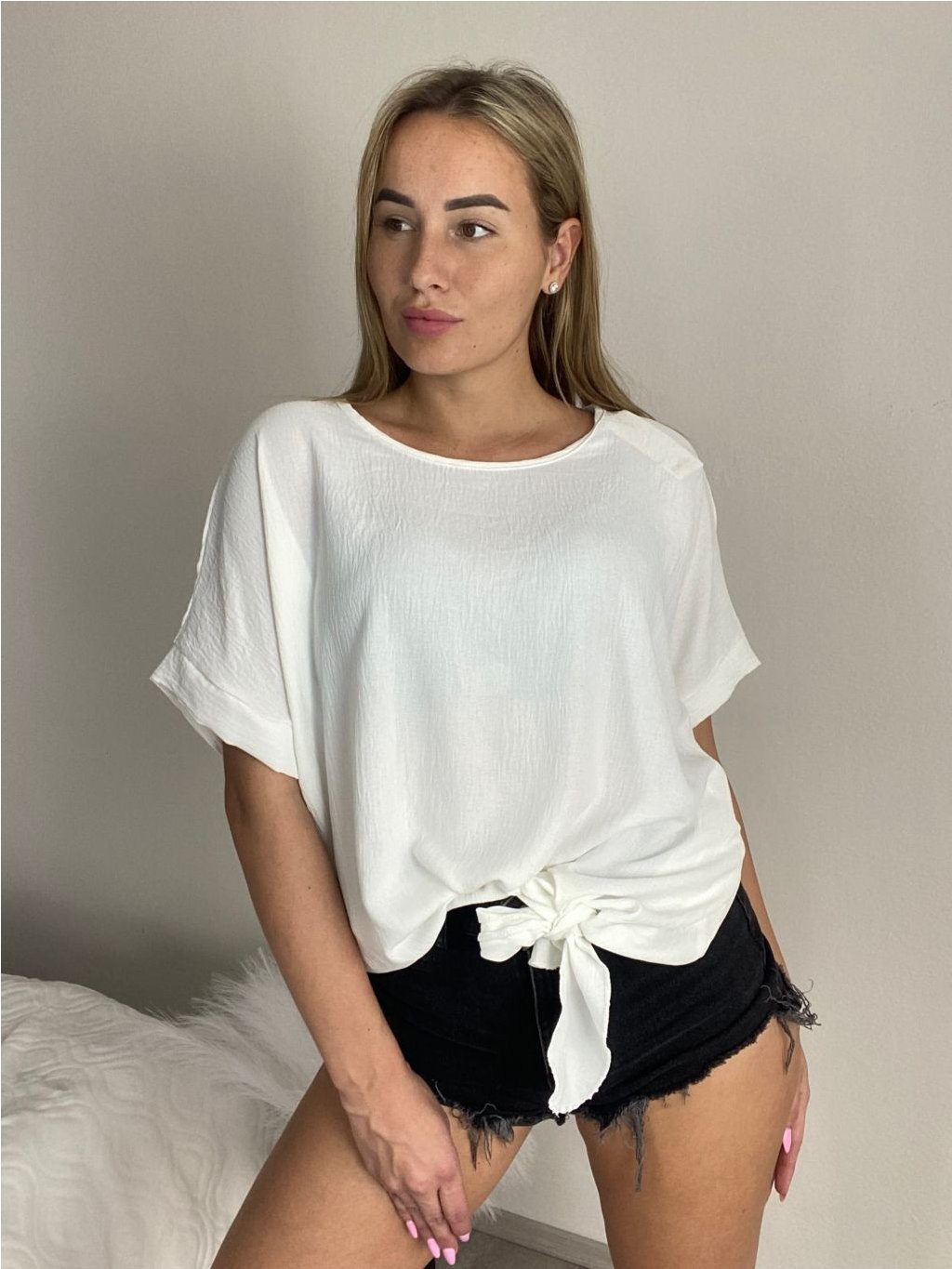 Modelka Veronika na fotografiích má výšku 170 cm a míry 109-85-115 (prsa-pas-boky)
